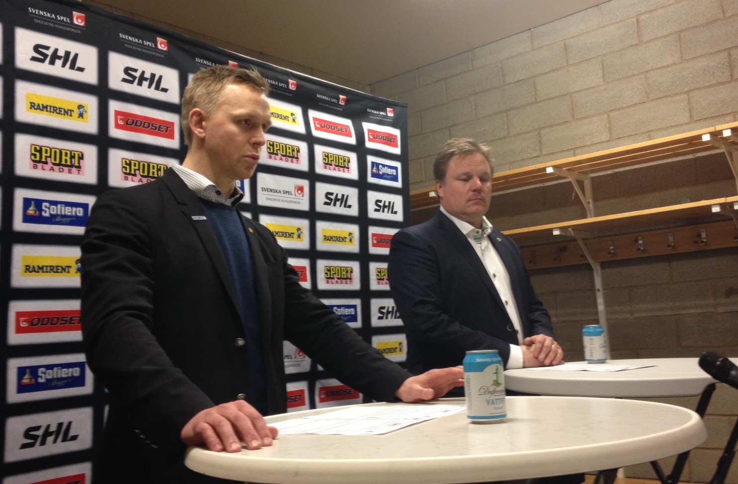 Leif Carlsson och Örebros assisterande tränare Roland Sätterman vid presskonferensen efter matchen 30/11. Foto: Marie Angle/fbkbloggen