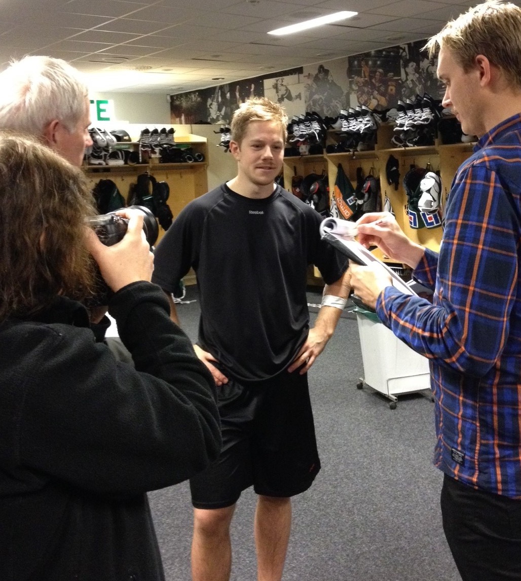 Matchvinnaren, tillika ledaren av den interna poängligan, Joakim Hillding var ett hett byte i omklädningsrummet efter matchen! Foto: Marie Angle/fbkbloggen