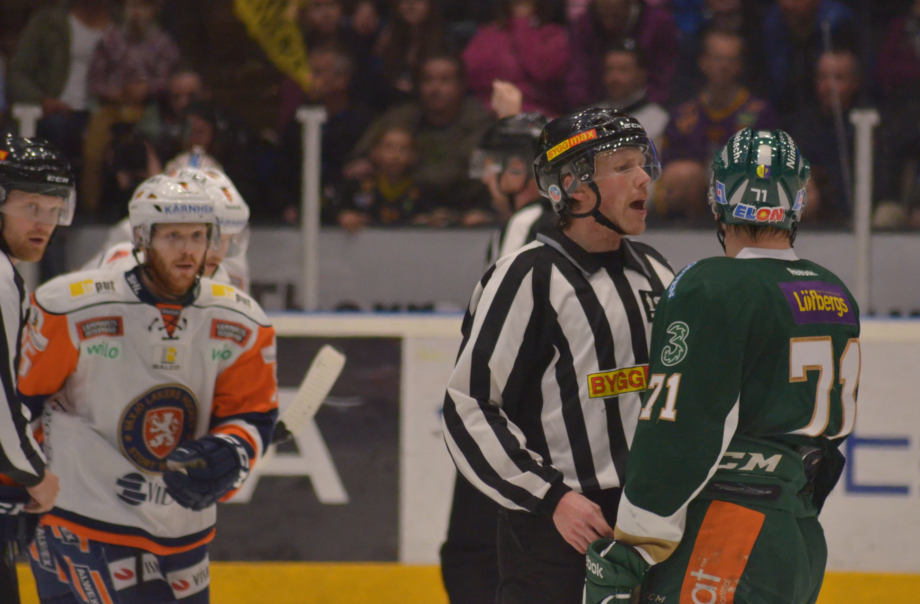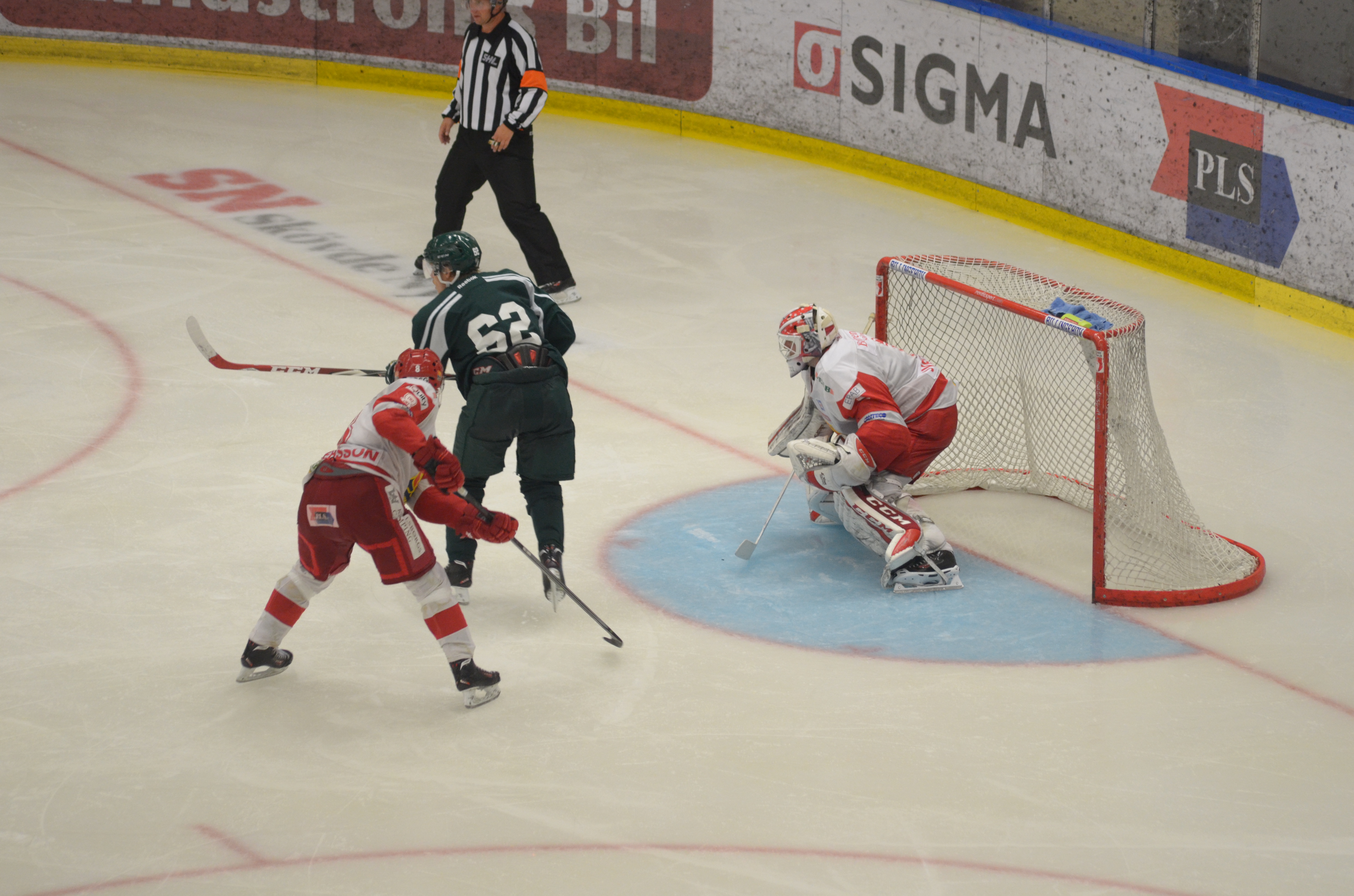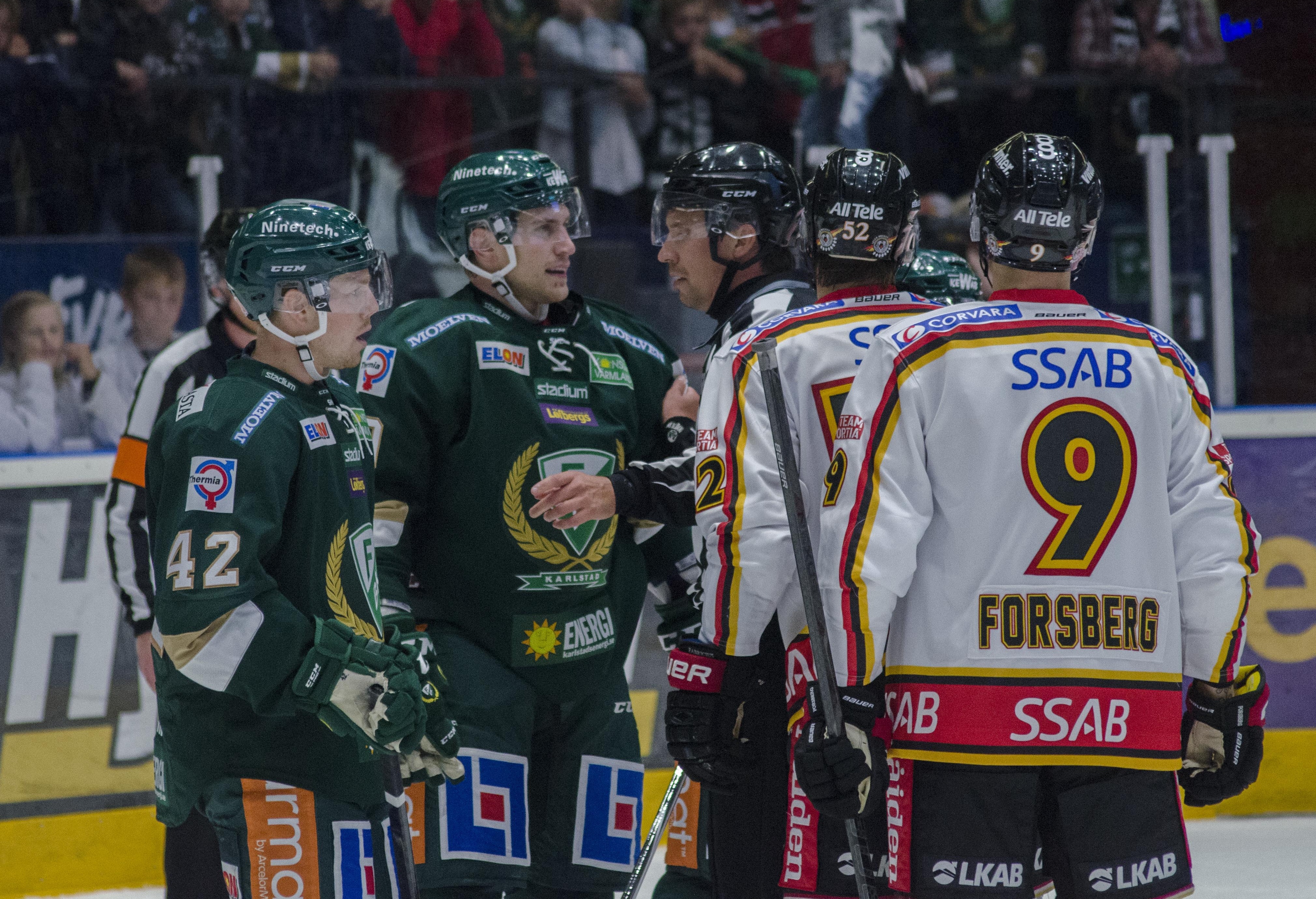 Sedan hade ni ju faktiskt några tuffa boxplay, två 3 mot 5-lägen som blev kostsamma… (Oscar Niklasson utgick med matchstraff efter två spelade perioder efter en liten diskussion med domaren.)