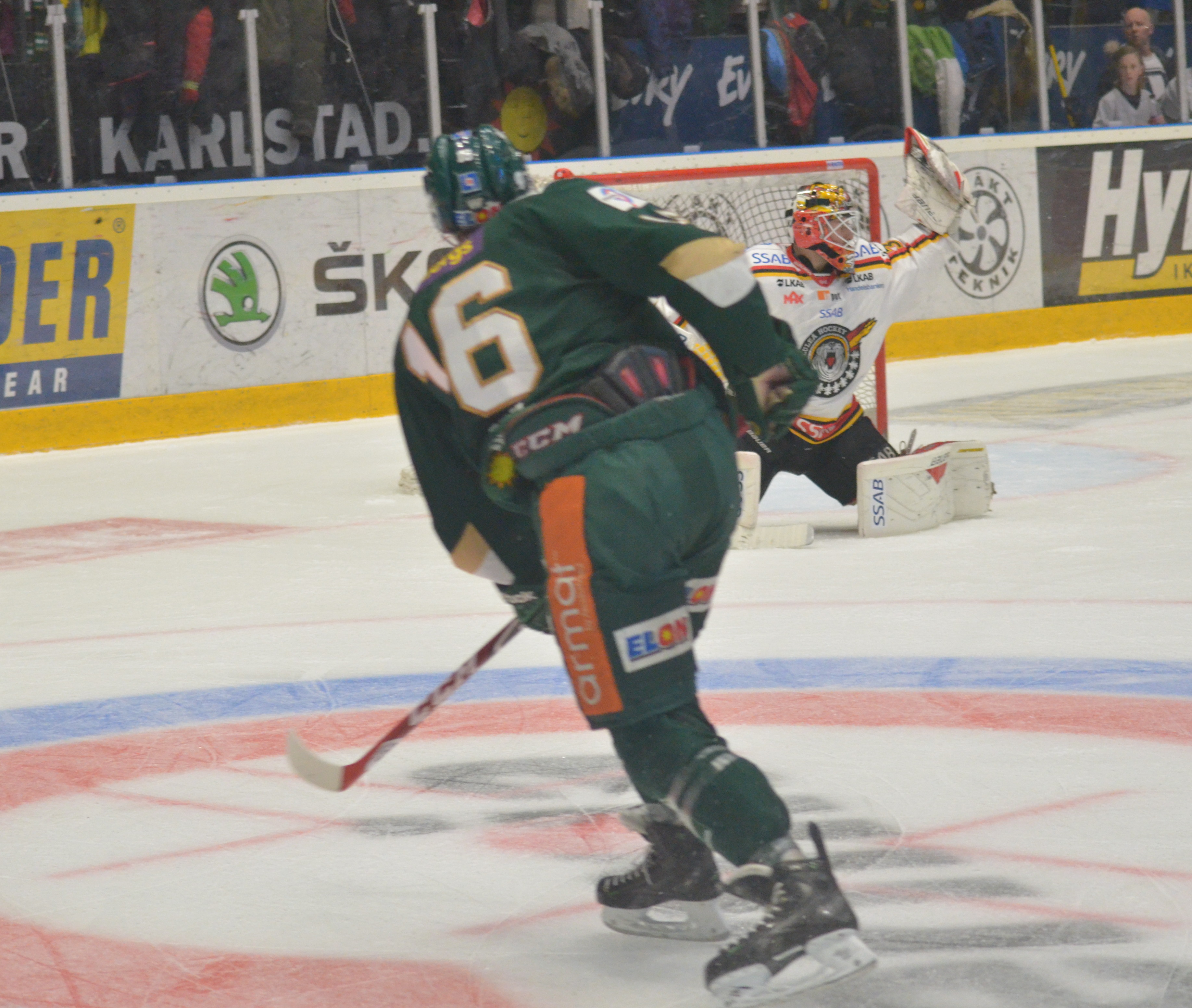 Värst är att Pontus Åberg har tvingats utgå efter att ha fått ett hårt skott från Sebastian Enterfeldts klubba rakt i tinningen när han satt i båset. Det såg inte bra ut när han omtöcknad leddes ut i omklädningsrummet!