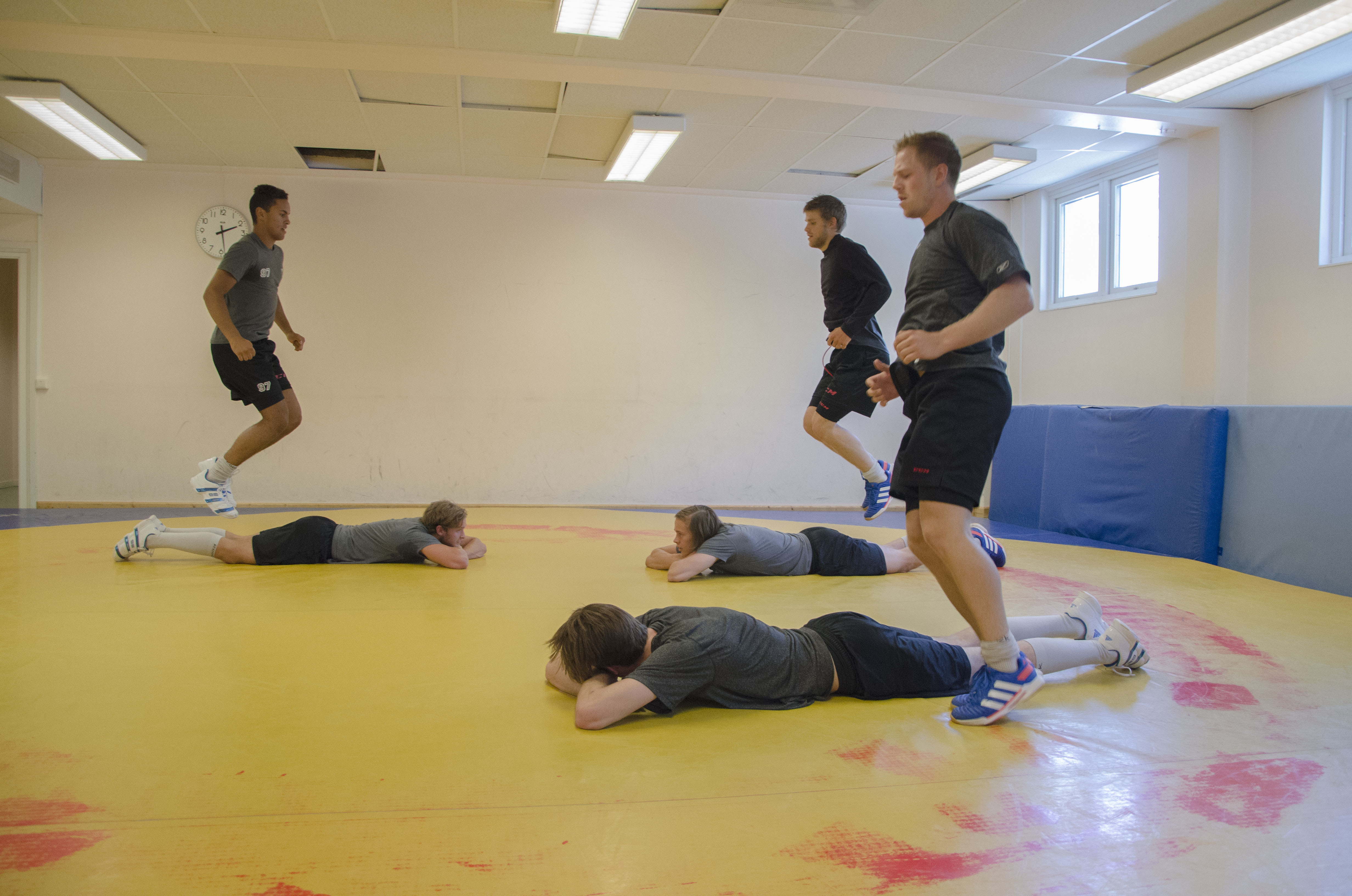 Innan 1,5 timmes stenhård brottning hade killarna kört två träningspass under förmiddagen: ett pass spänst/styrka i Wåxnäshallen och ett gympass hemma i LA.