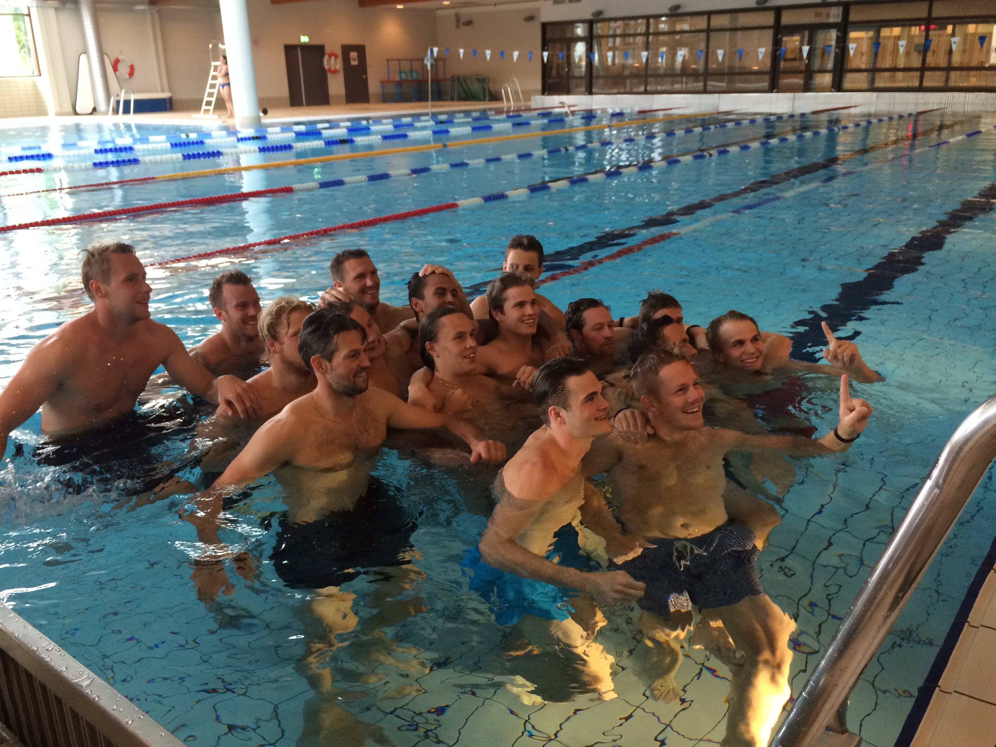 Nja, helt klart föredrar de flesta hockeykillarna vatten i fast form – så där superpopulärt var det väl inte att simma. Men tävlingsinstinkten är som vanligt stark, och killarna simmade för glatta livet. Här är det inte någon som gör något halvdant, om man säger så. Utan att nämna några namn kan vi också konstatera att vi bjöds på ett och annat legendariskt magplask, och vi fick också se några vågade hopp från högsta hopptornet.