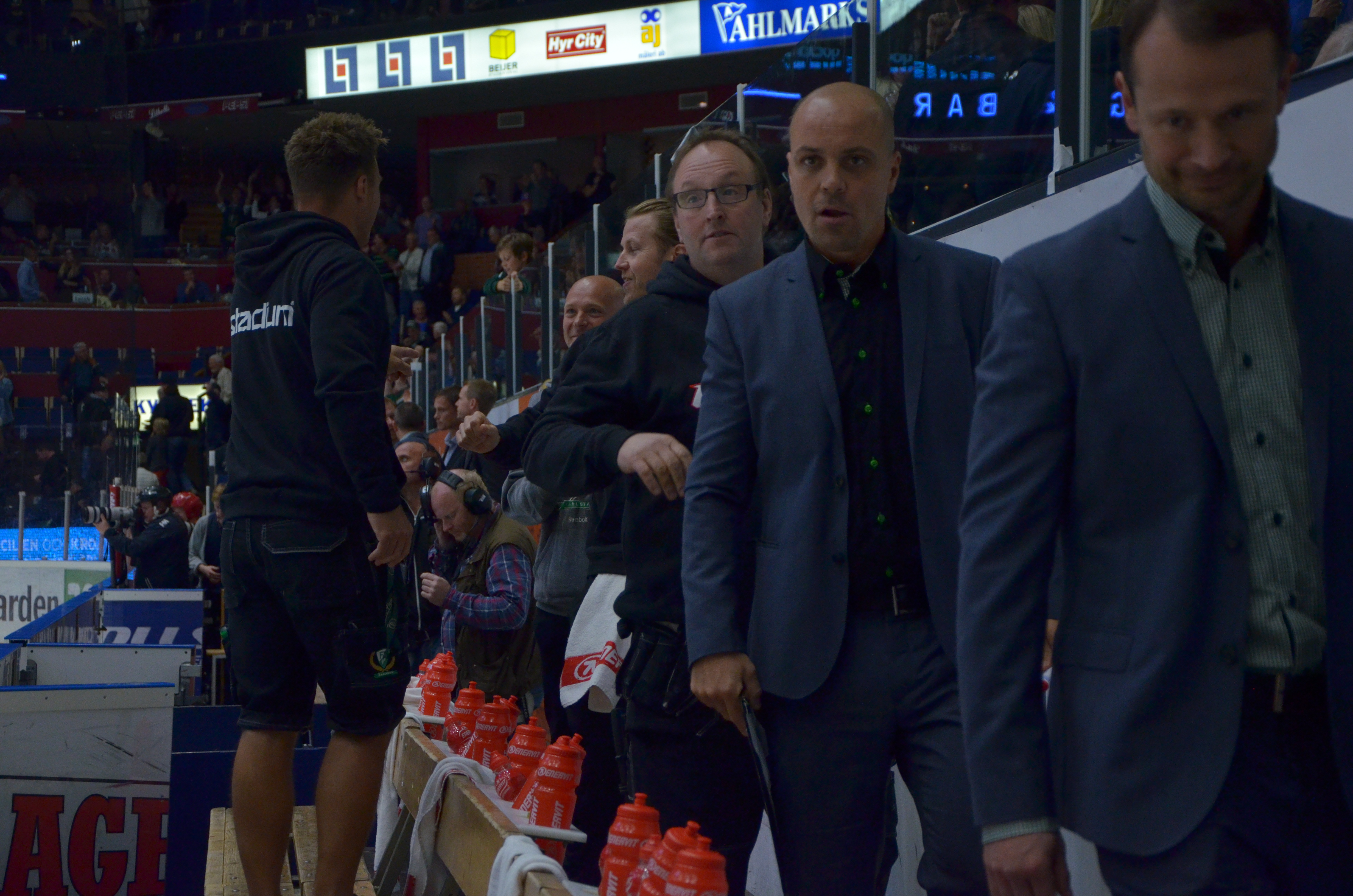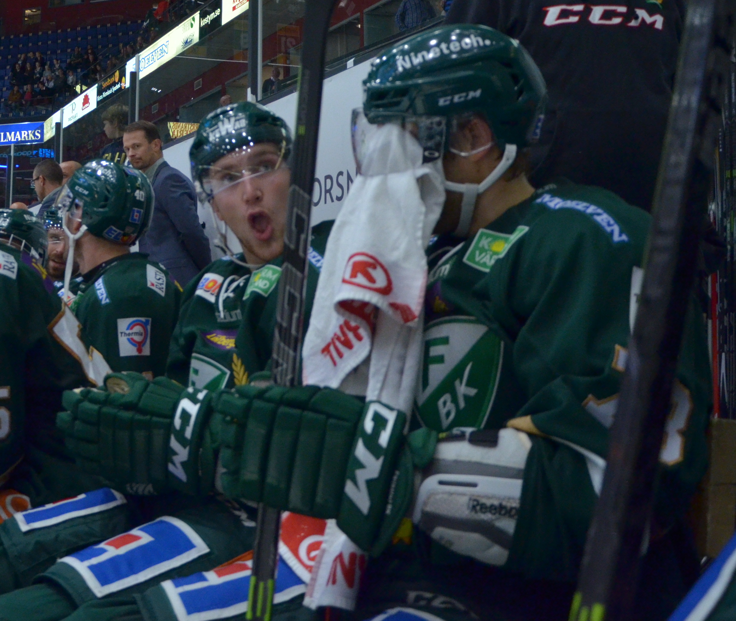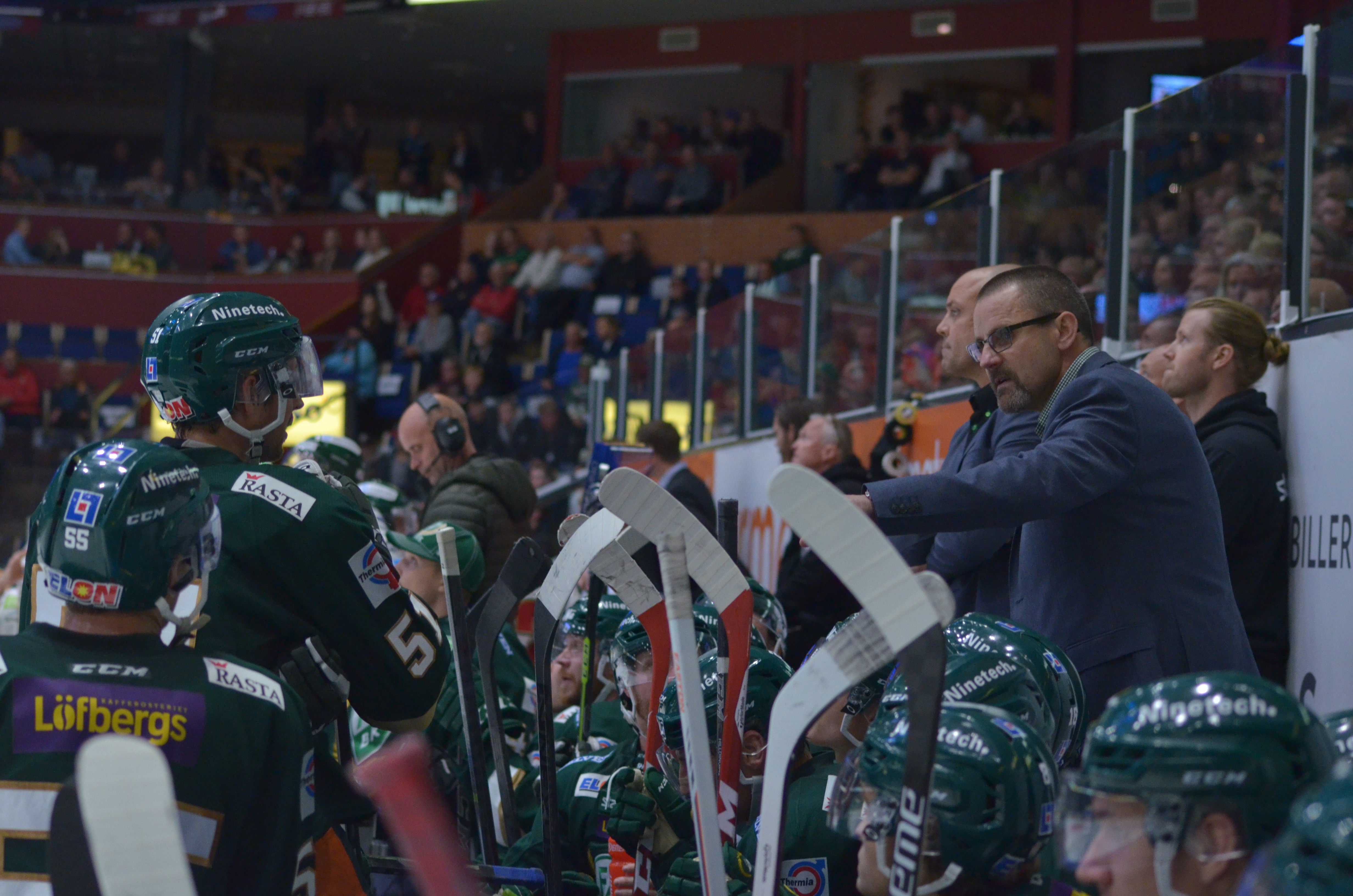 - Time out, Färjestad. Tommy instruerar i båset