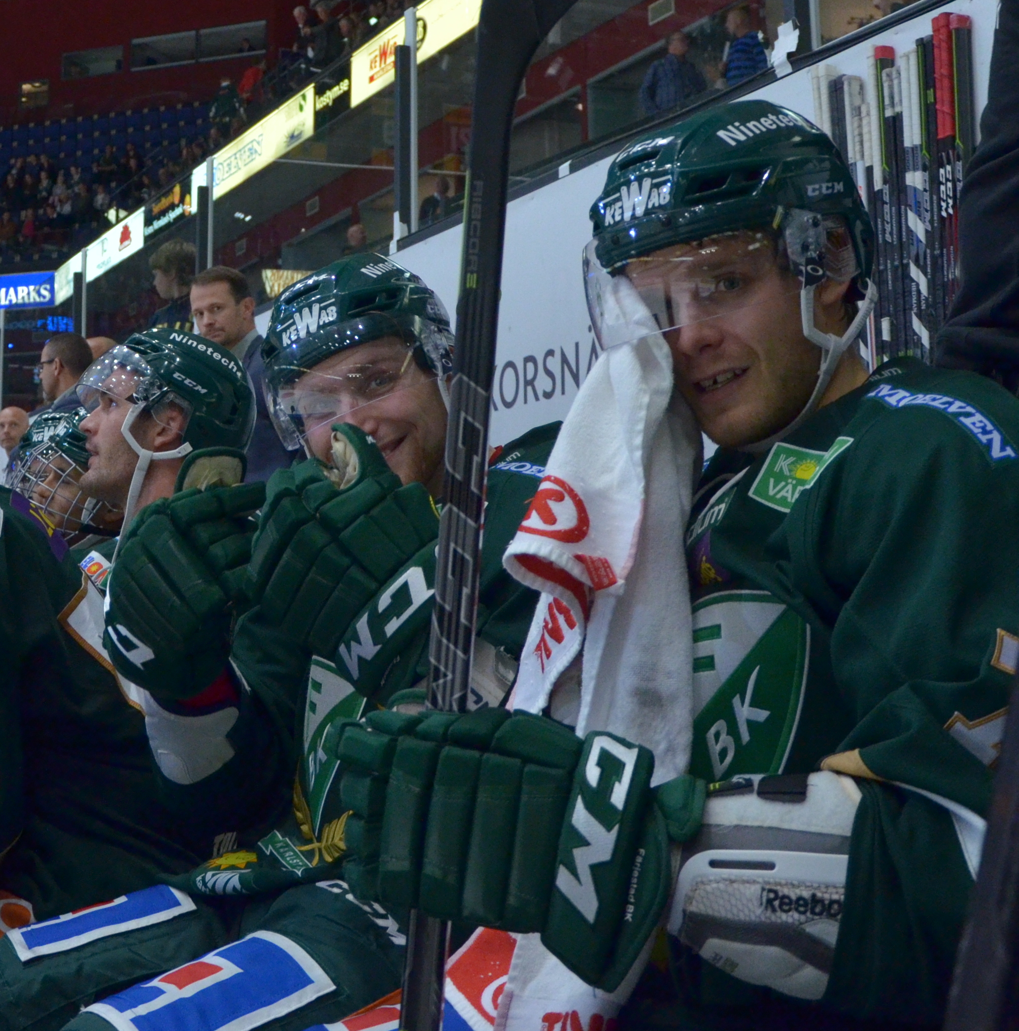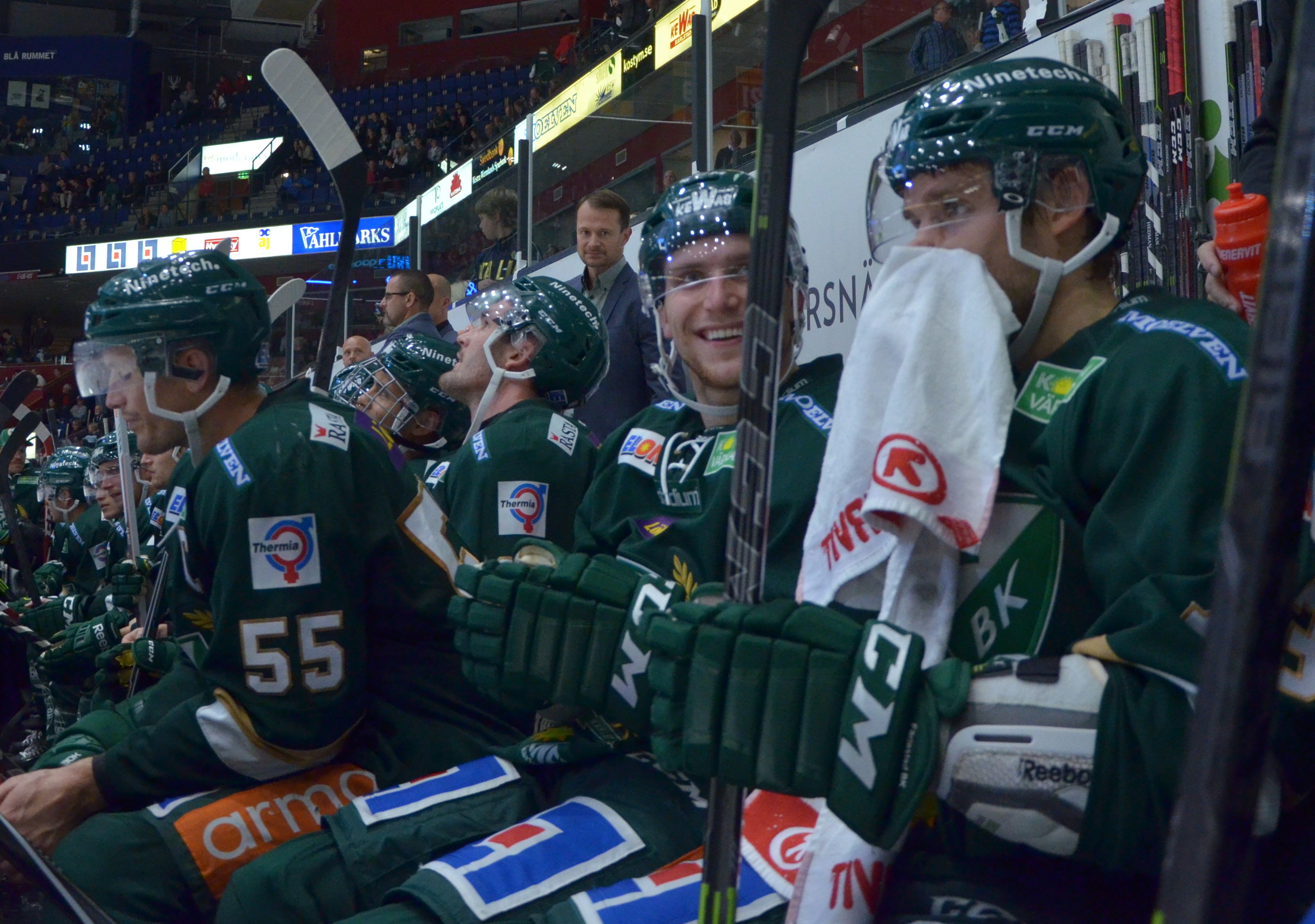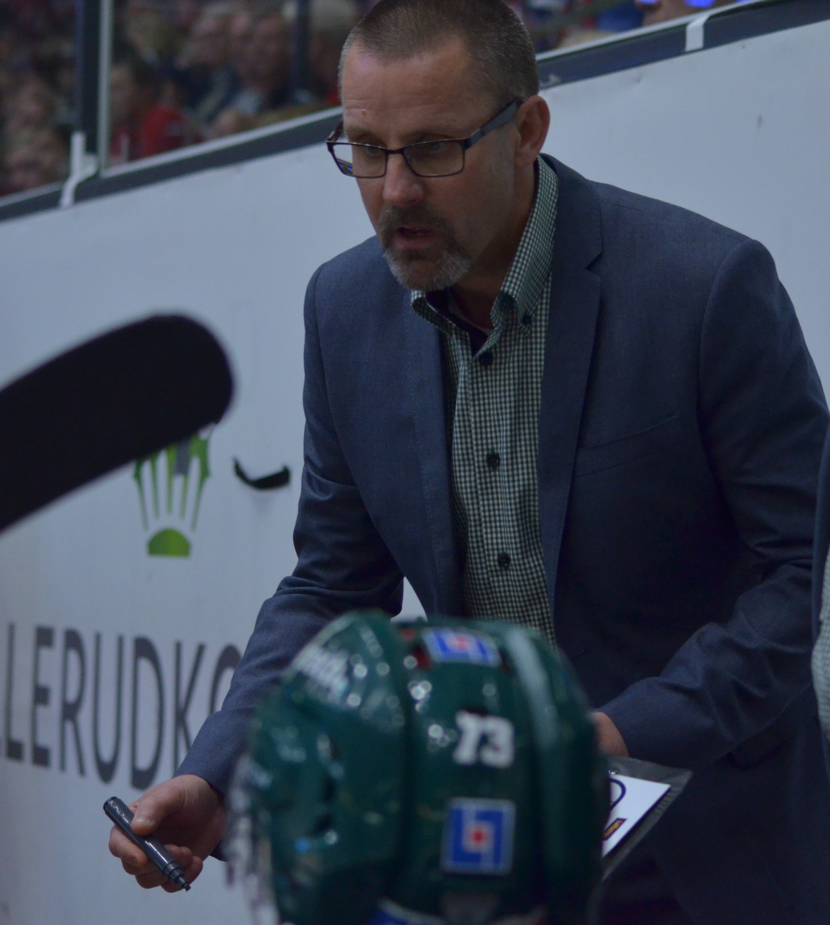 - Time out, Färjestad. Tommy instruerar i båset