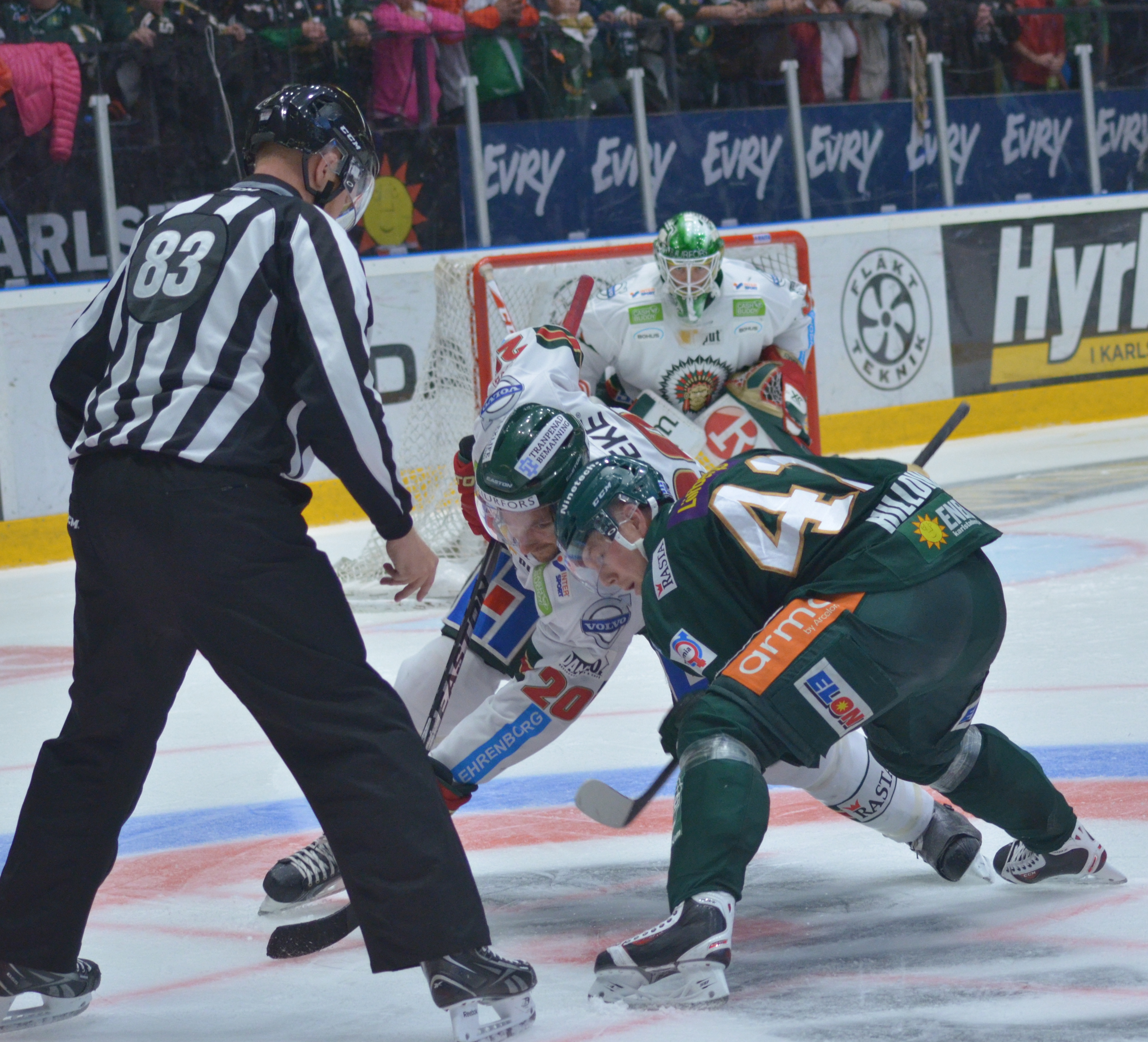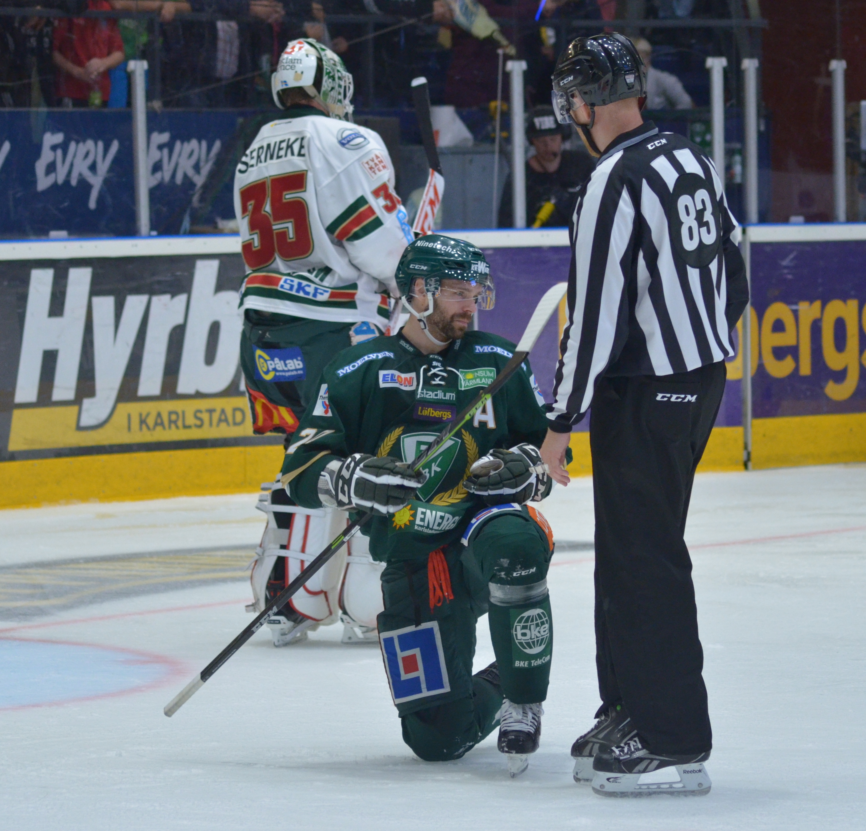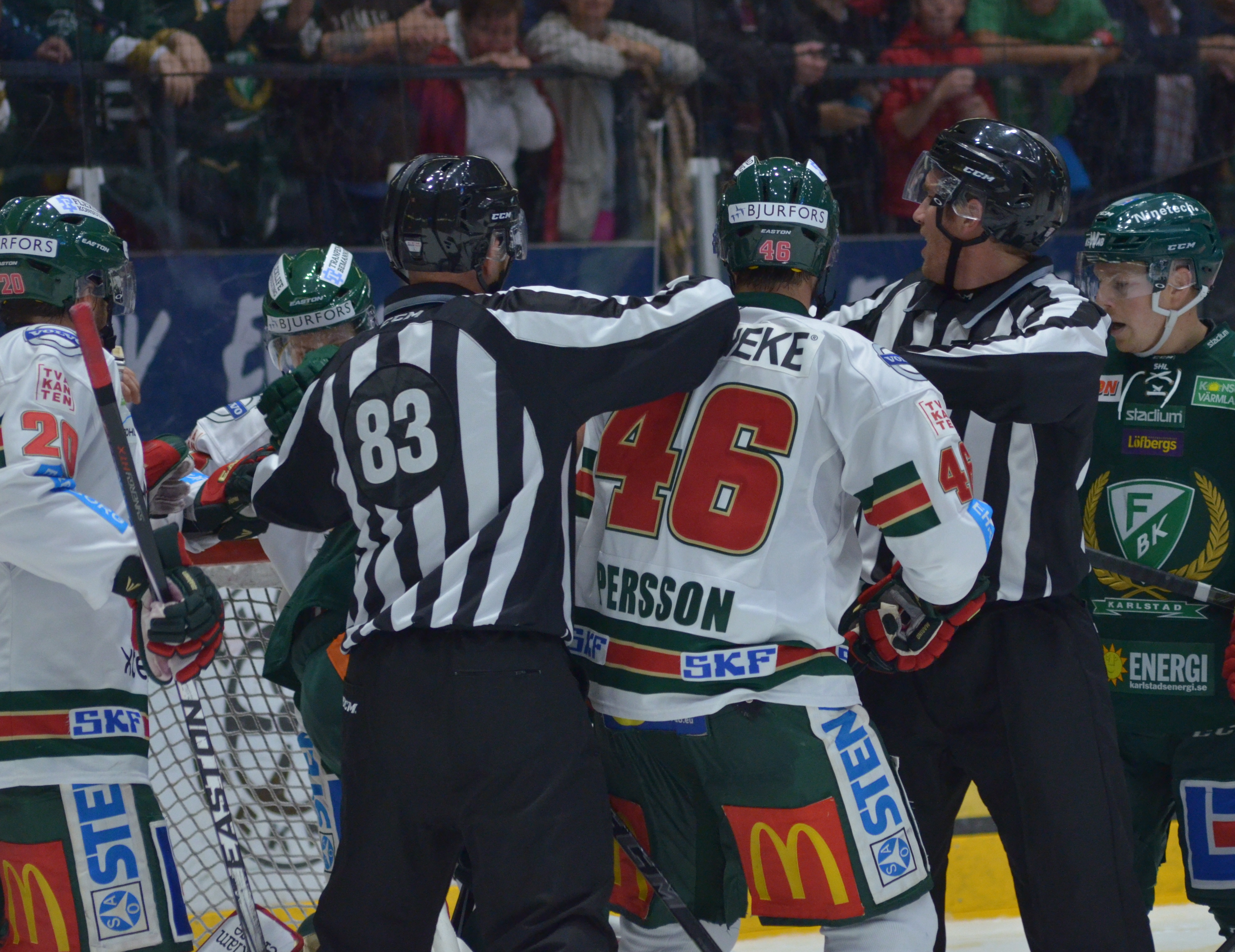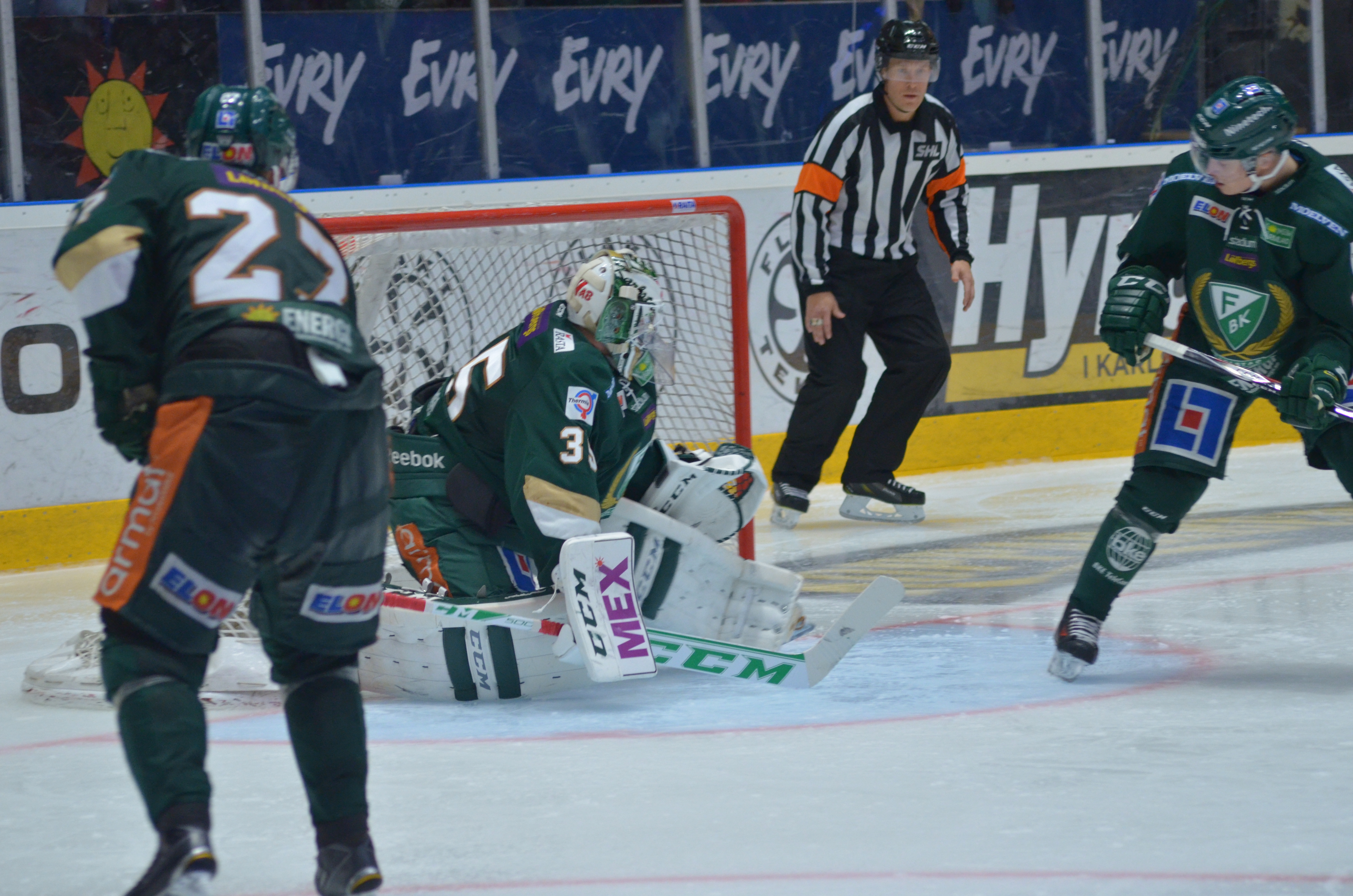”Idag tycker jag inte att det är någon i vårt lag som sticker ut, men vi har ett bra målvaktsspel. Han (Fernström, min anm) kan inte göra mycket åt de mål Färjestad gör. Det är fina mål; i powerplay, bortre sidan och direktskott. Inte mycket att säga om dem. Linus gör det väldigt bra!”