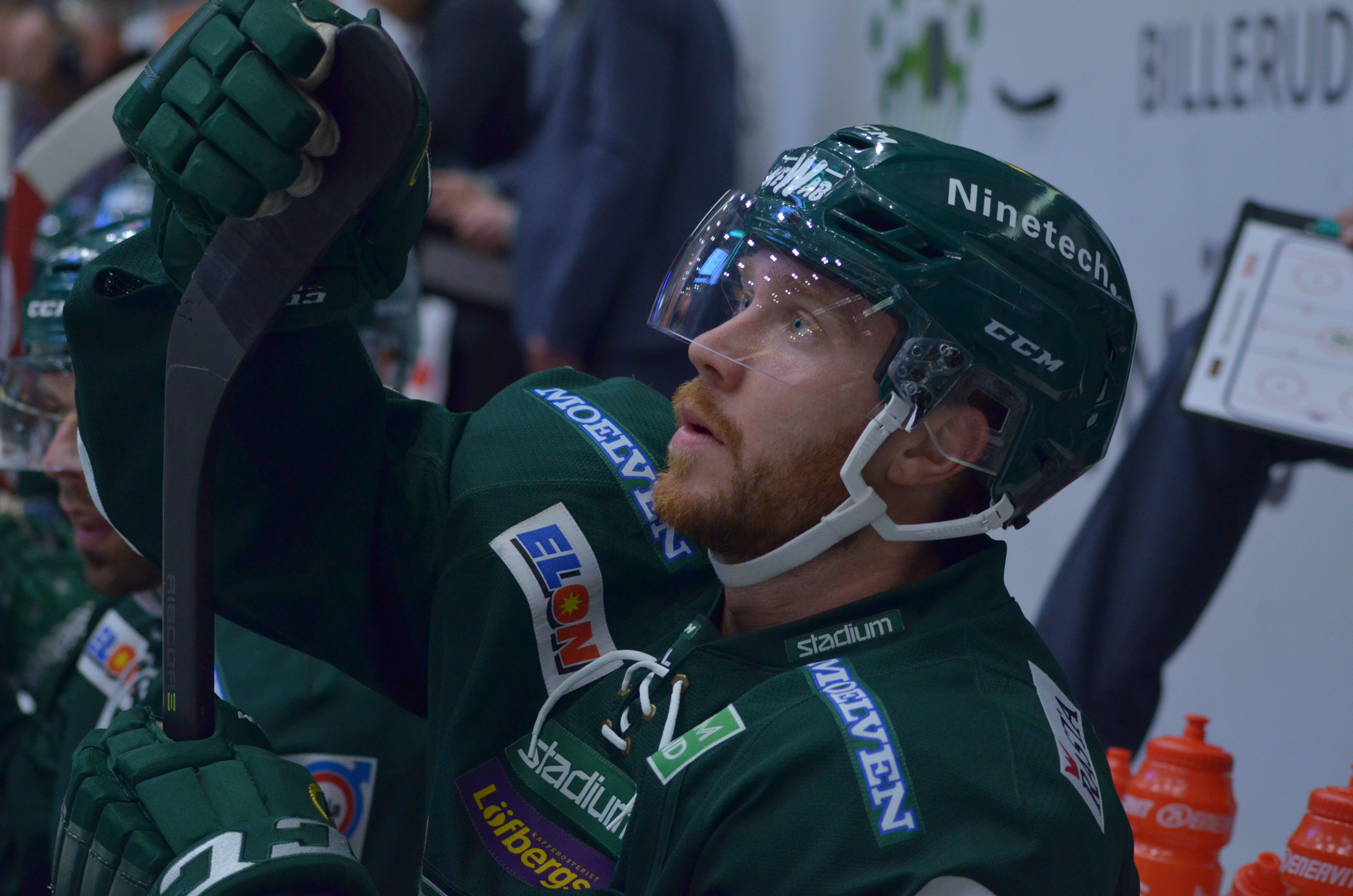 ”Haha, just när det händer blir man grymt frustrerad! Men det gäller att bita sig i tungan. Om vi bakom bänken blir frustrerade blir förstås även de som sitter på bänken frustrerade. Vi får inte lämpa över något på dem, utan måste göra oss redo inför det som kommer och vilka som ska in på isen. Det gäller att släppa den där frustrationen så fort som möjligt!”
