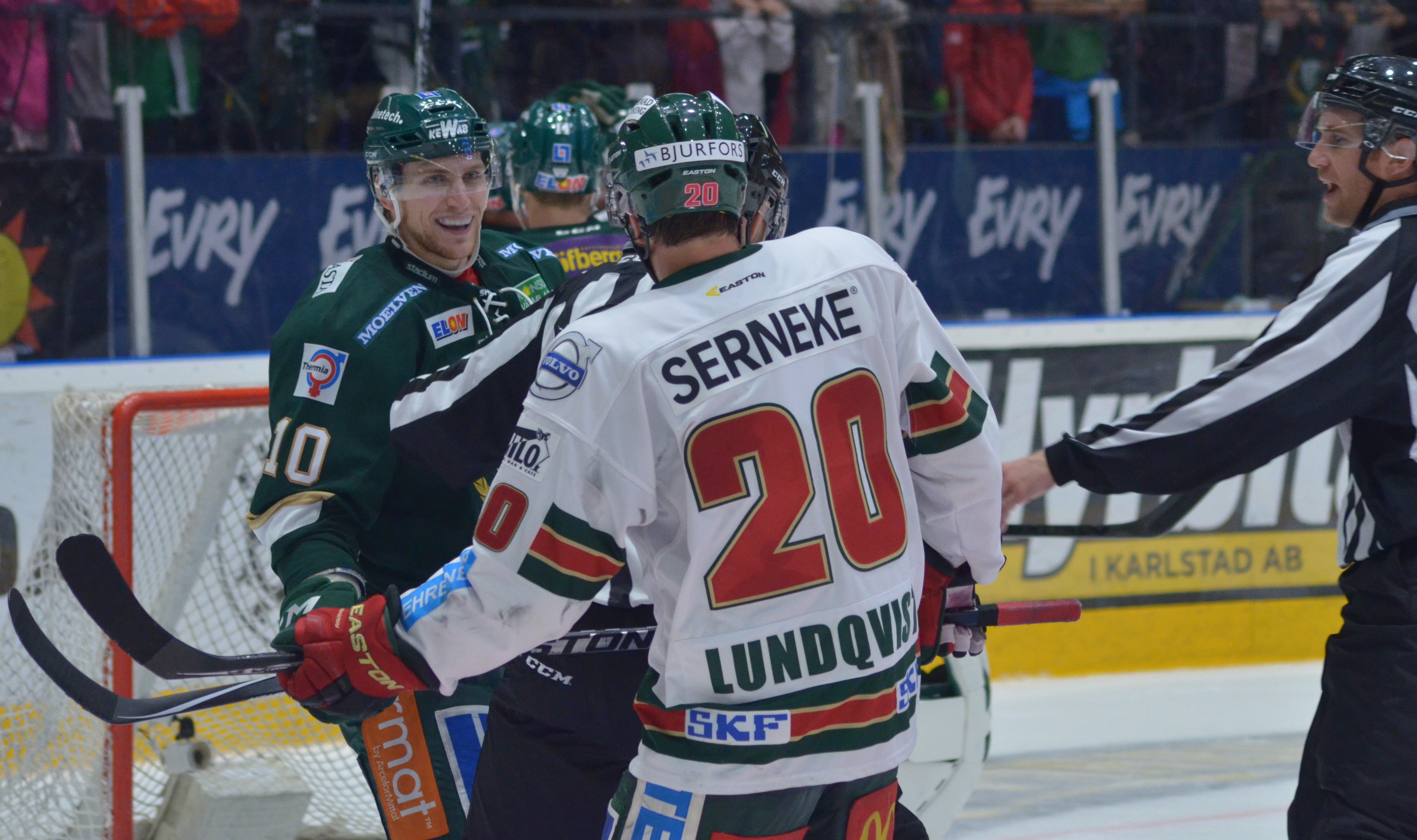 ”Så är det ju. Men jag brukar ju inte visa så mycket, även om det var jäkligt skönt att få sätta pucken idag, och att få vinna framför den här härliga publiken.”