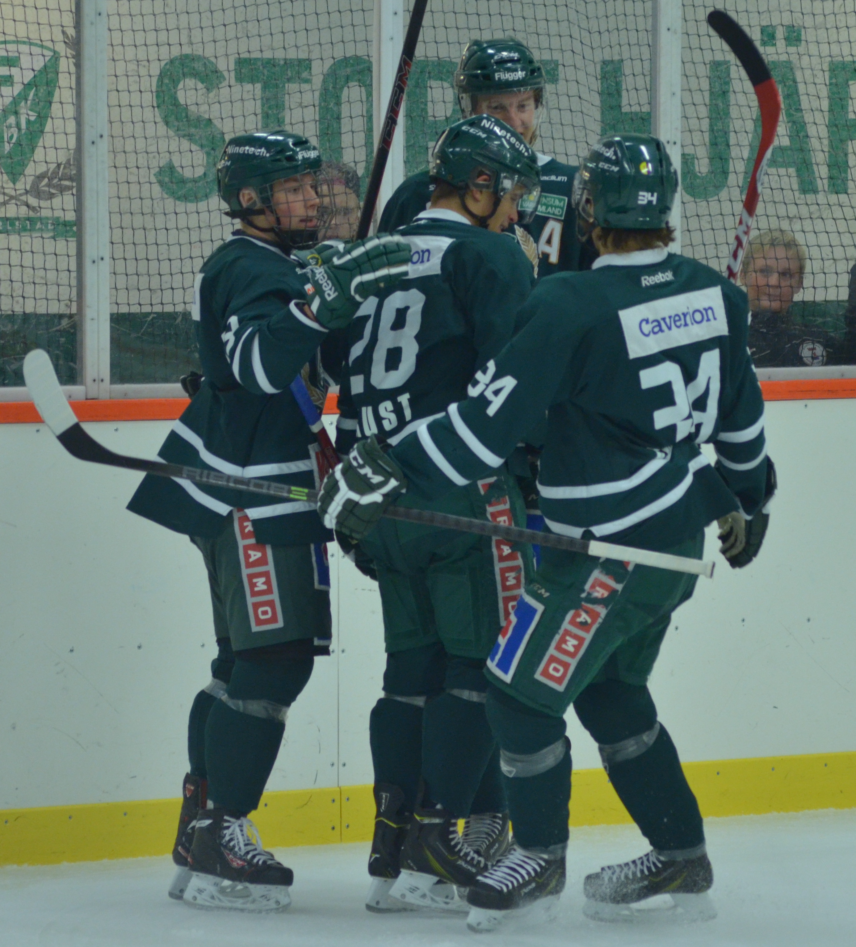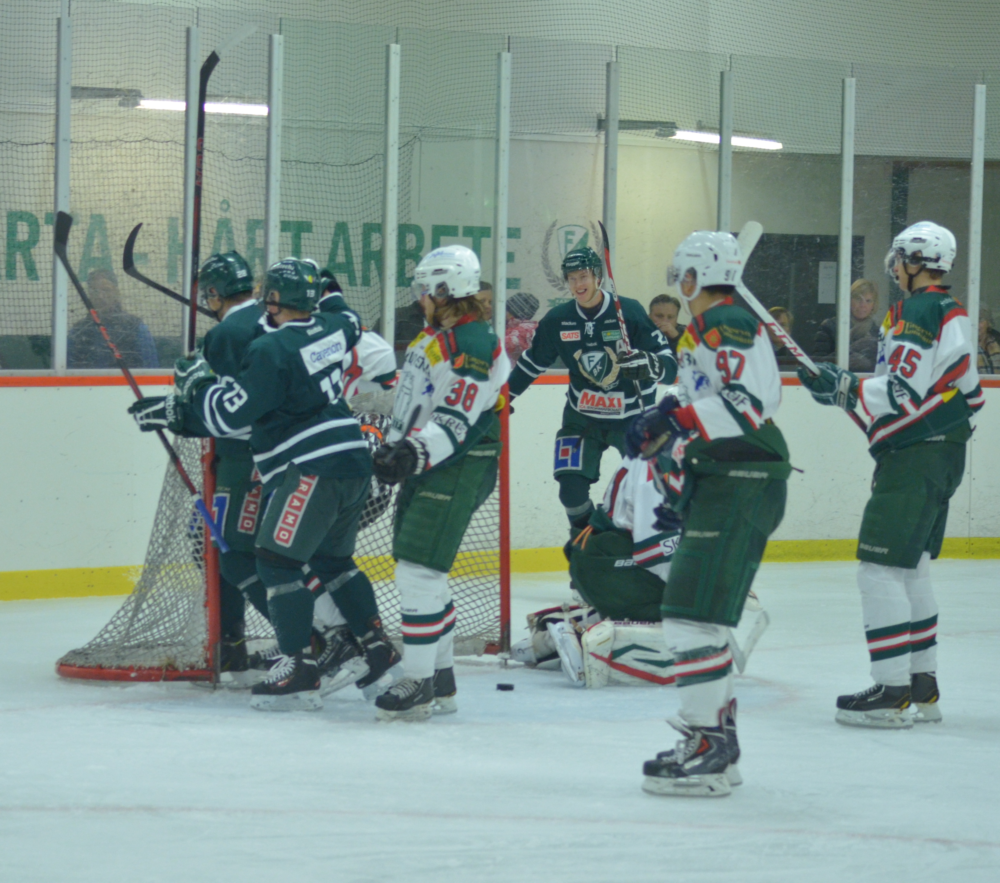 - Jesper Alasaari gör viktiga 3-1 och kramas om av lagkamraterna Foto: Joakim Angle/fbkbloggen