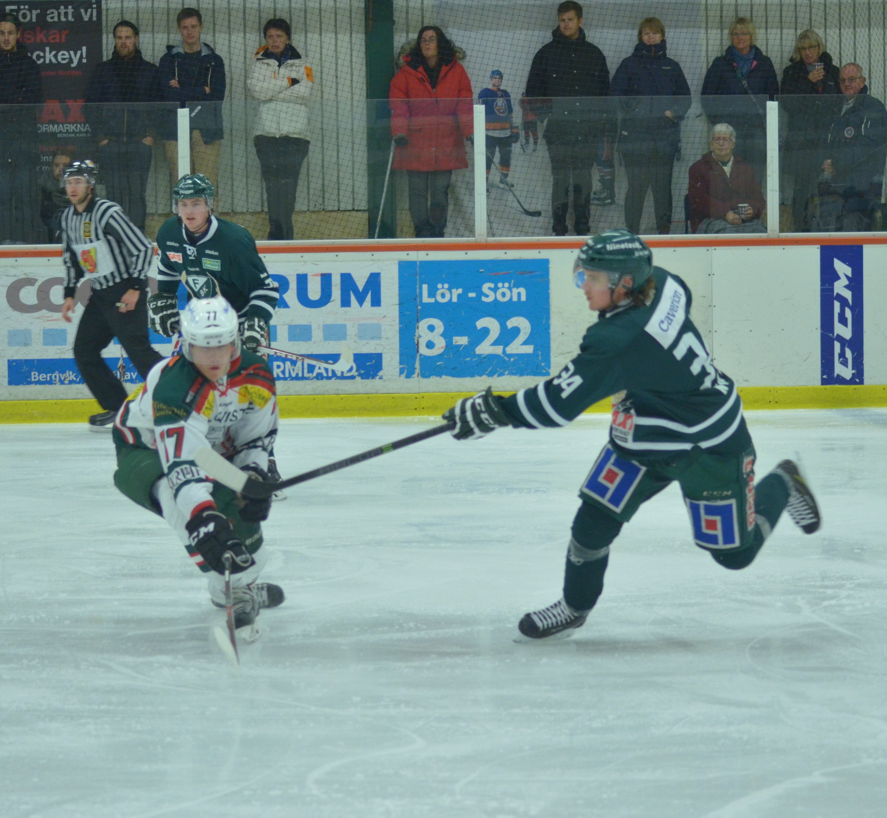 Jag hade tyvärr inte möjlighet att se matchen live som planerat (har suttit dygnet runt med alla matcher den här helgen) men känslan när man läser matchprotokollet är att det var en lite grinig historia där humöret tröt hos oss (PIM 28-8) och med en motståndarmålvakt som stod på huvudet – gästernas keeper Jonas Strand noterades för hela 97,06 i räddningsprocent. Färjestad tog ut sin målvakt, Viktor Andersson, i samband med en time out med minuten kvar av tredje perioden men lyckades inte få in någon kvitteringspuck. Färjestads enda mål gjordes i powerplay av Anton Brandhammar, assisterad av Felix Sandholt.