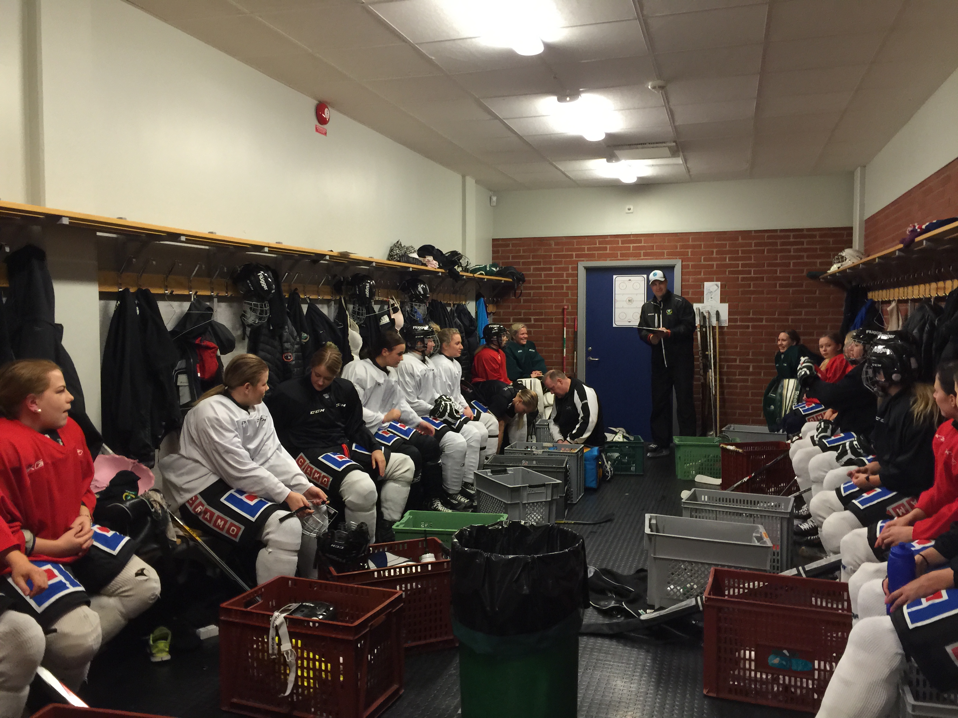 Sara och hennes gäng i omklädningsrummet innan veckans sista träning. Foto: Marie Angle/fbkbloggen