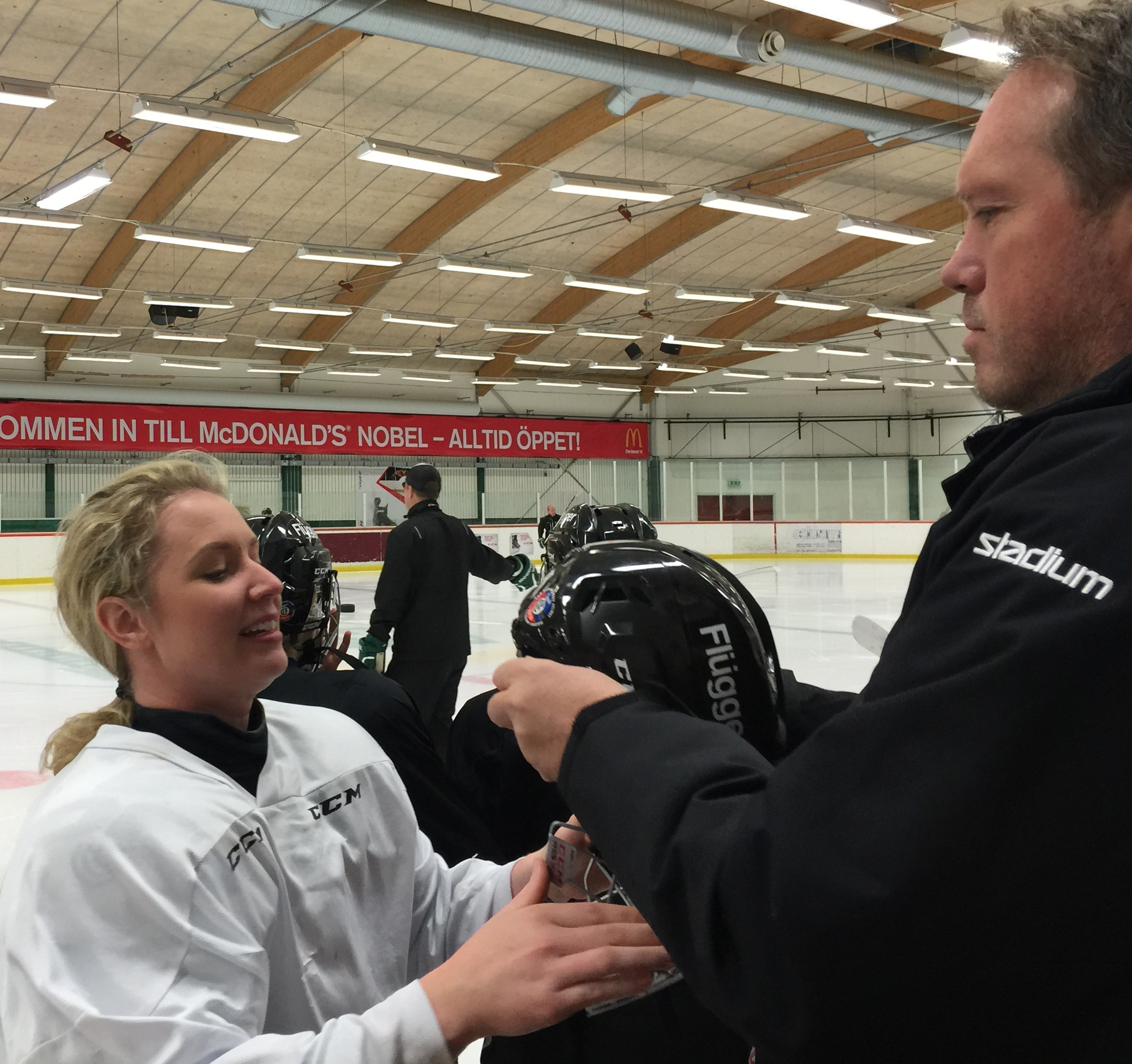 Forwarden Jonna Andersson som, förutom att lira hockey läser heltid på universitetet OCH jobbar som personlig assistent, har en tuff vecka. För att kunna spela helgens viktiga matcher hade hon bytt pass med sjyssta kollegor, vilket innebar att hon har jobbat natt torsdag och fredag för att sedan åka raka spåret till universitetet och arbeta med sin B-uppsats och därefter träna med laget. Igår innebar det en kort tupplur på soffan innan träningen, och så direkt därifrån till nattens pass. Så ser damhockeyvärlden ut idag – snacka om hockey-hjältar!
