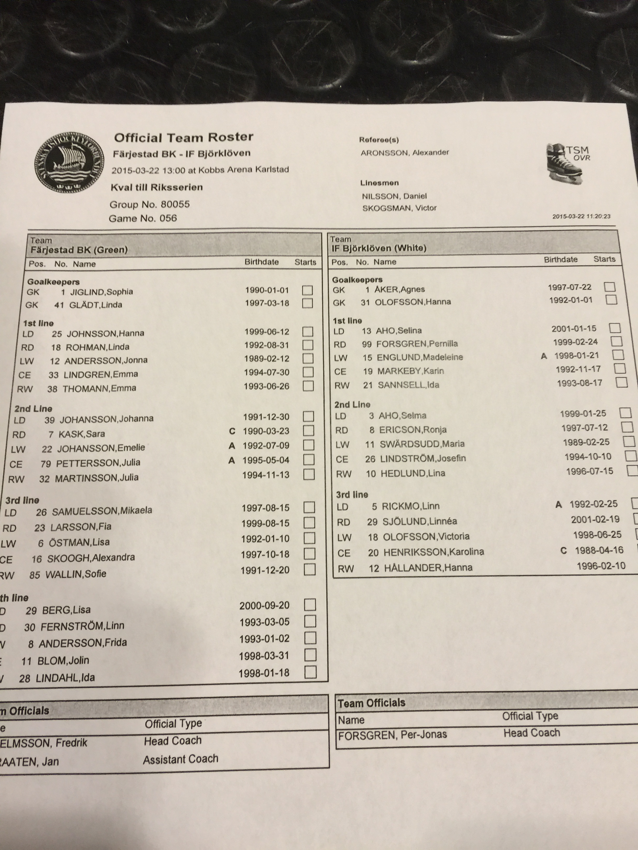 Matchrapporten är som vanligt inlämnad till Färjestad och hittas här.