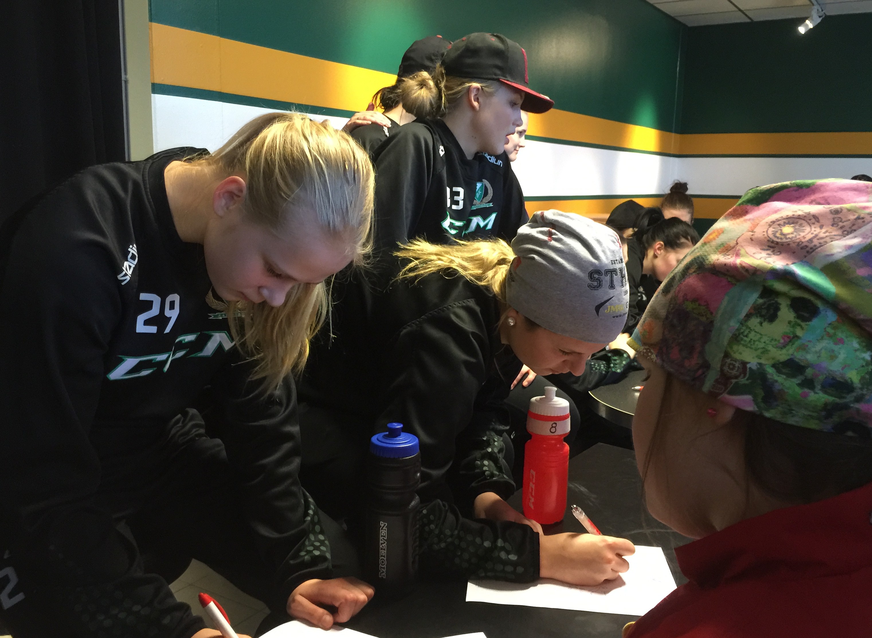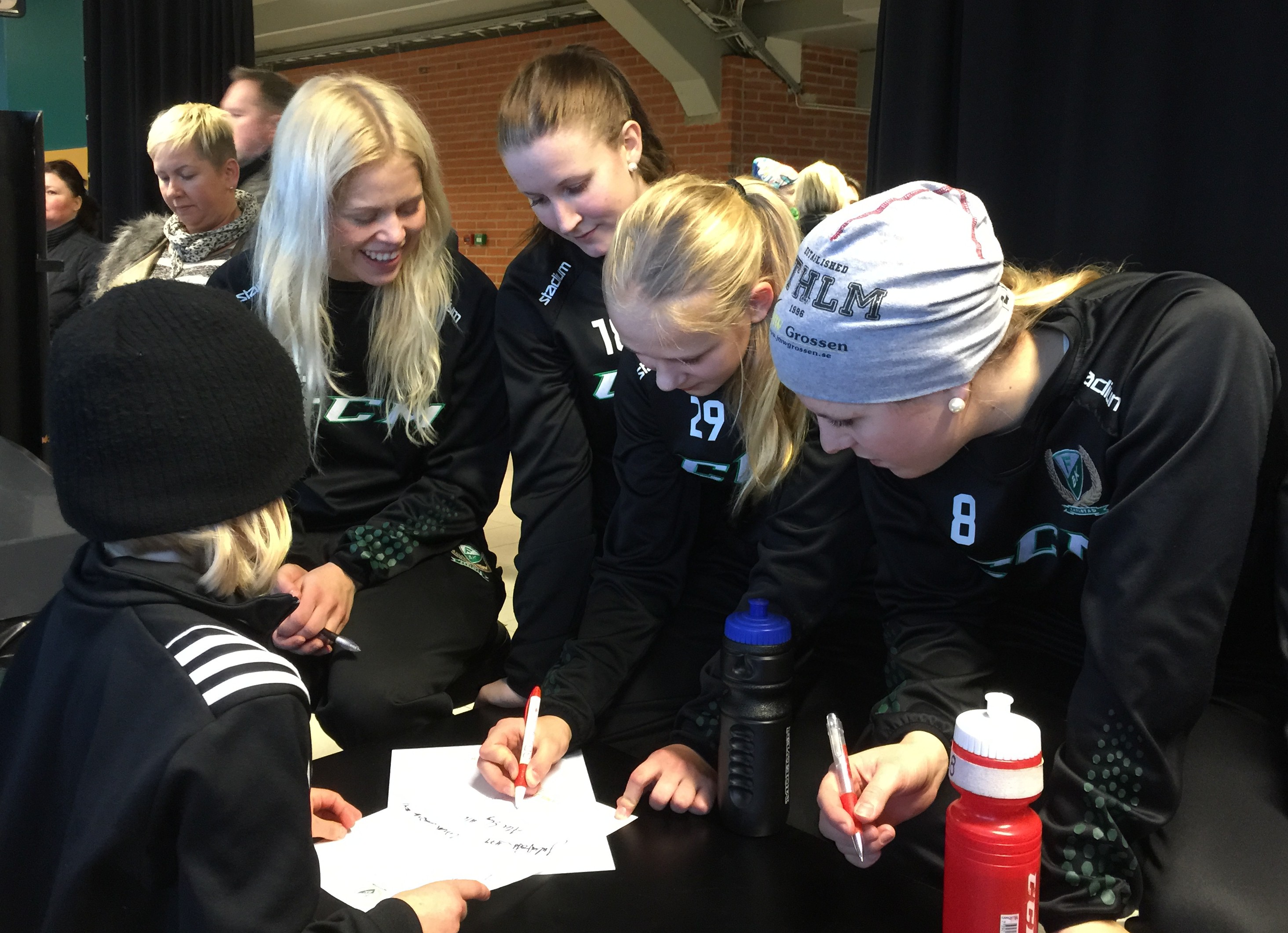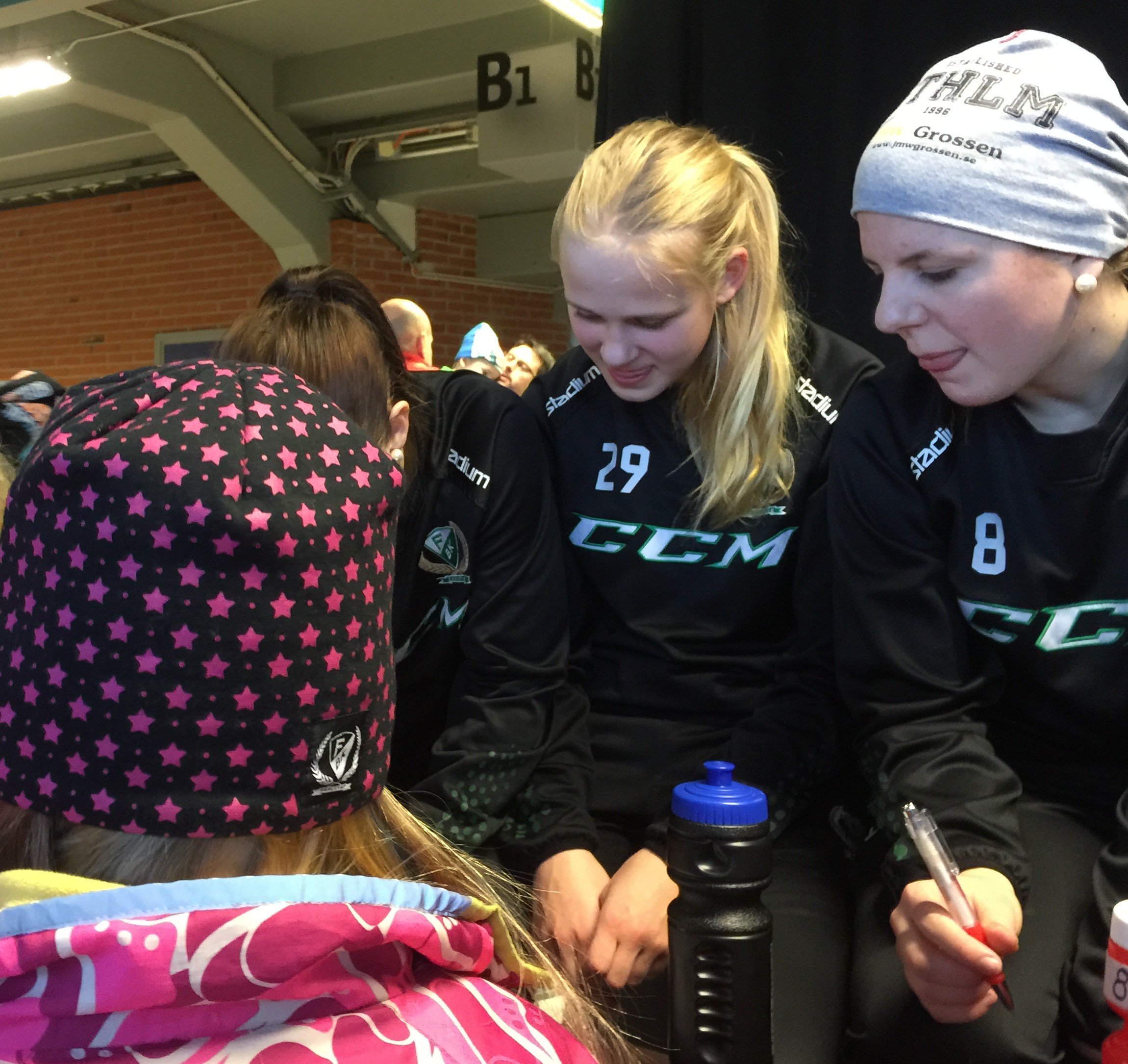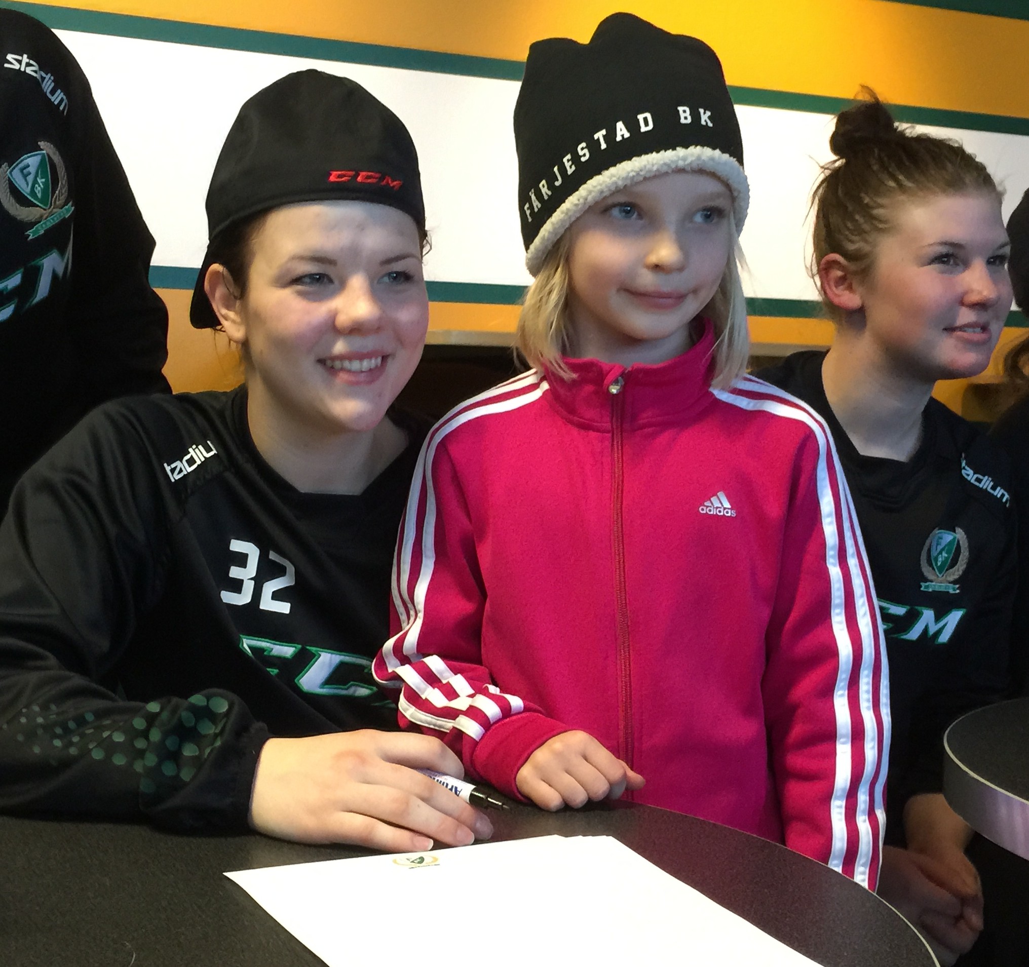 - Autografskrivning efter matchen. Färjestad BK:s Hockeyallians ordnade Girl Power All Star Foto: Marie Angle/fbkbloggen