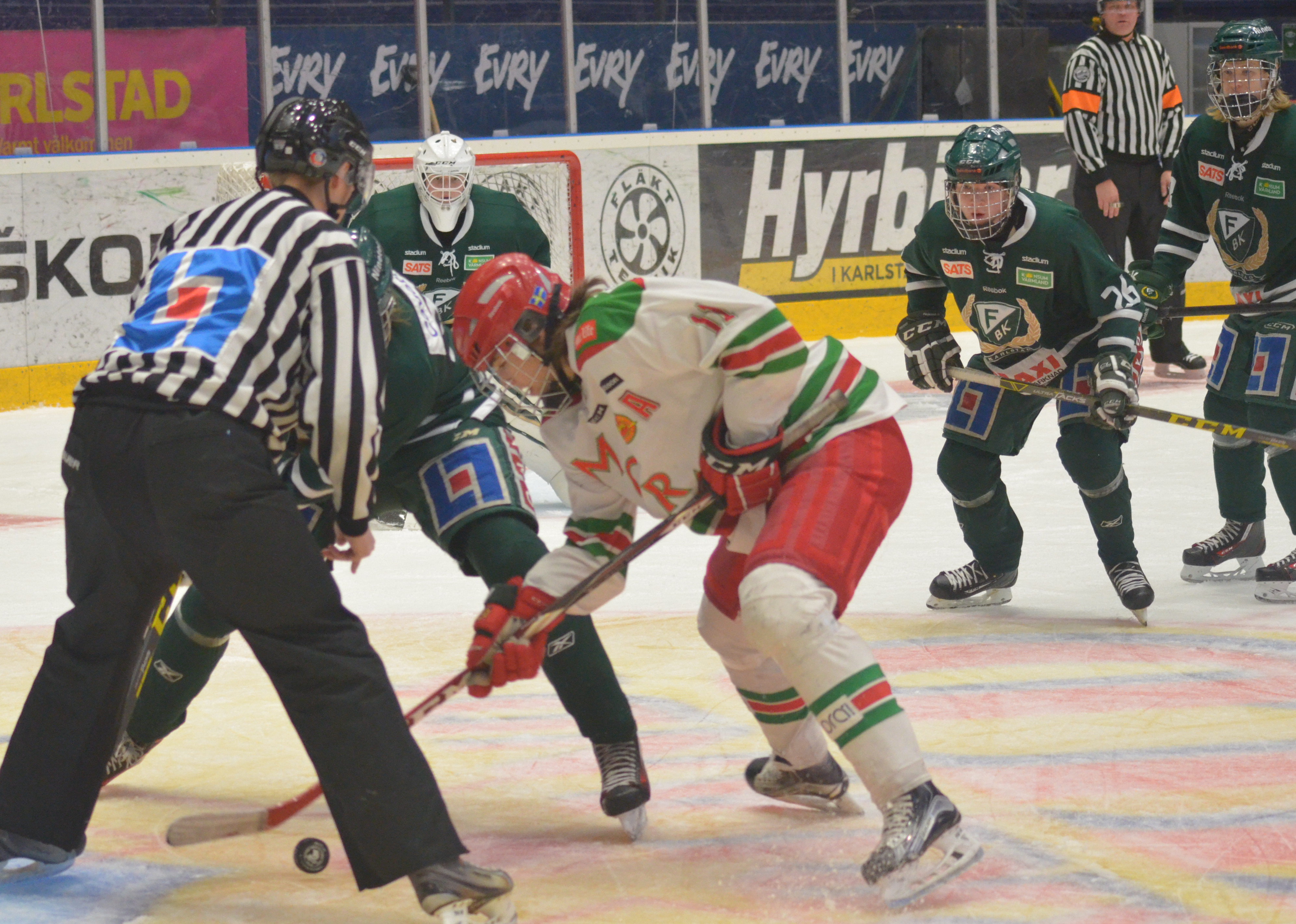 I söndagens match mot Karlskrona stod det 1-1 efter en ganska jämn första period, som dock följdes av en målexplosion i andra perioden. Den perioden slutade 0-4 till Färjestad, som därmed klev ifrån till 5-1. Efter det var matchen tämligen punkterad, och Färjestad kunde bevaka sin ledning i tredje perioden. Ett tröstmål av hemmalaget i tredje perioden innebar att matchen slutade 2-5.