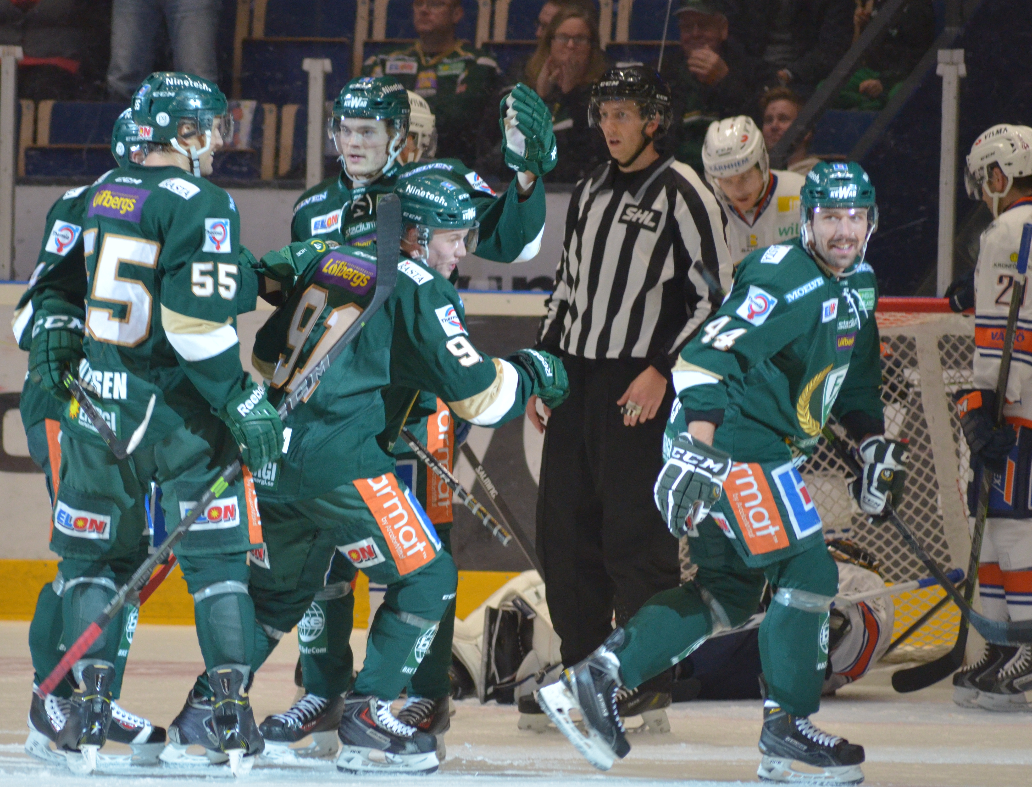 Andra perioden: 2–1 (2.01) Jonas Frögren (Petter Emanuelsson, Pontus Petterström), 2–2 (17.02) Max Görtz (Jack Connolly, Ville Lajunen) spel fem mot fyra.