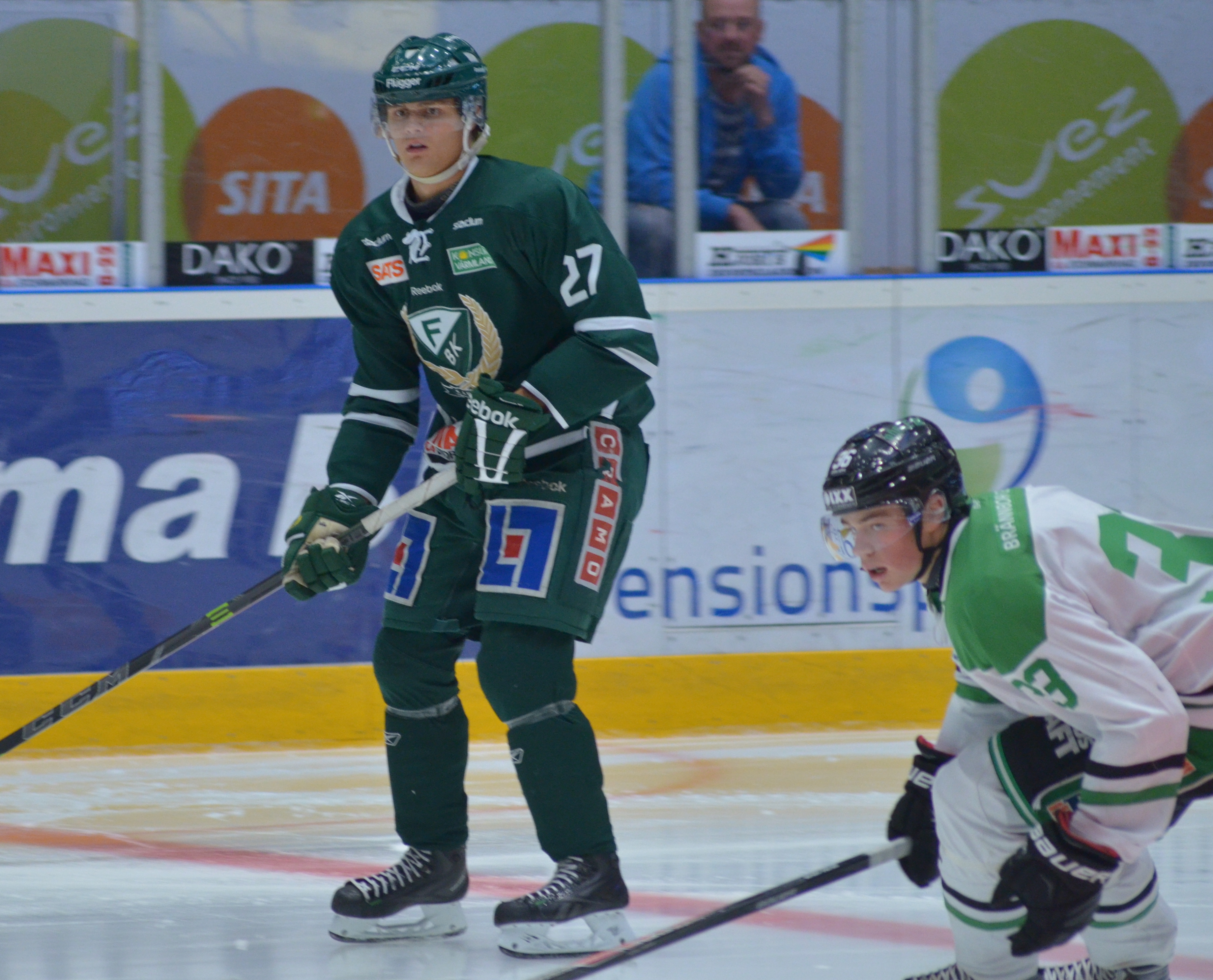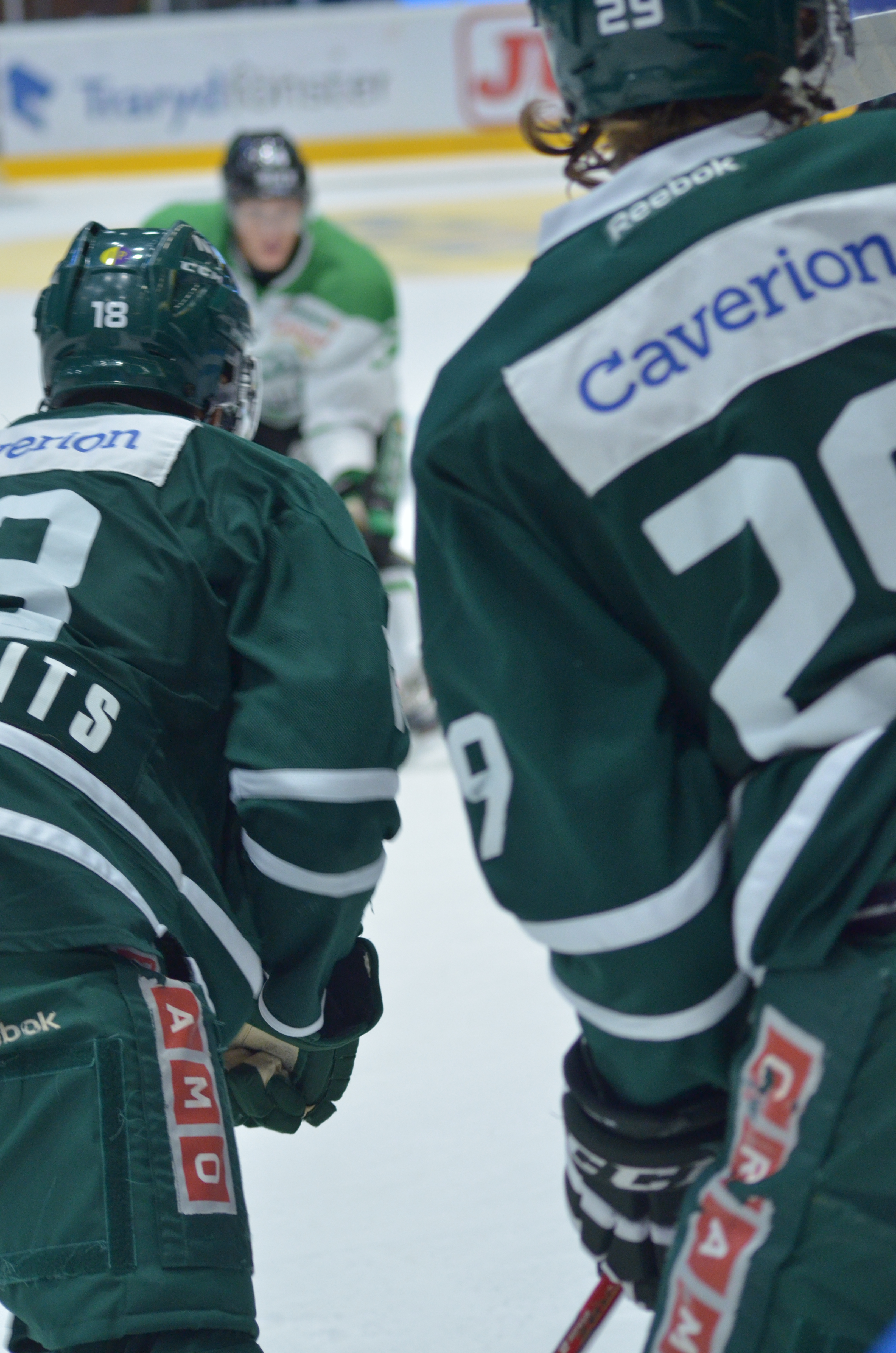 A-lagets 94:or, förstaårsseniorerna Johan Olofsson och Ludwig Byström – den siste alltså på väg till Timrå i tre matcher för att få välbehövlig speltid – gjorde varsin bra match. 1+1 för Johan och några riktigt vassa ingripanden av Ludde, bland annat när han snyggt och utan att dra på sig någon utvisning avväpnade en Röglespelare som var på väg in i ett friläge efter en spelvändning i boxplay. Det var första matchen jag såg med 17-årige Andreas Kåberg (som är tillbaka i Färjestad efter en säsong i Forshaga/Grums) i målet och han imponerade. Utöver det tyckte jag att backen Hugo Enock, 16, gjorde några fina byten när han både tog och gav en smäll för laget. Färjestads försvarsspel var helt klart grunden till söndagens fina skalp.