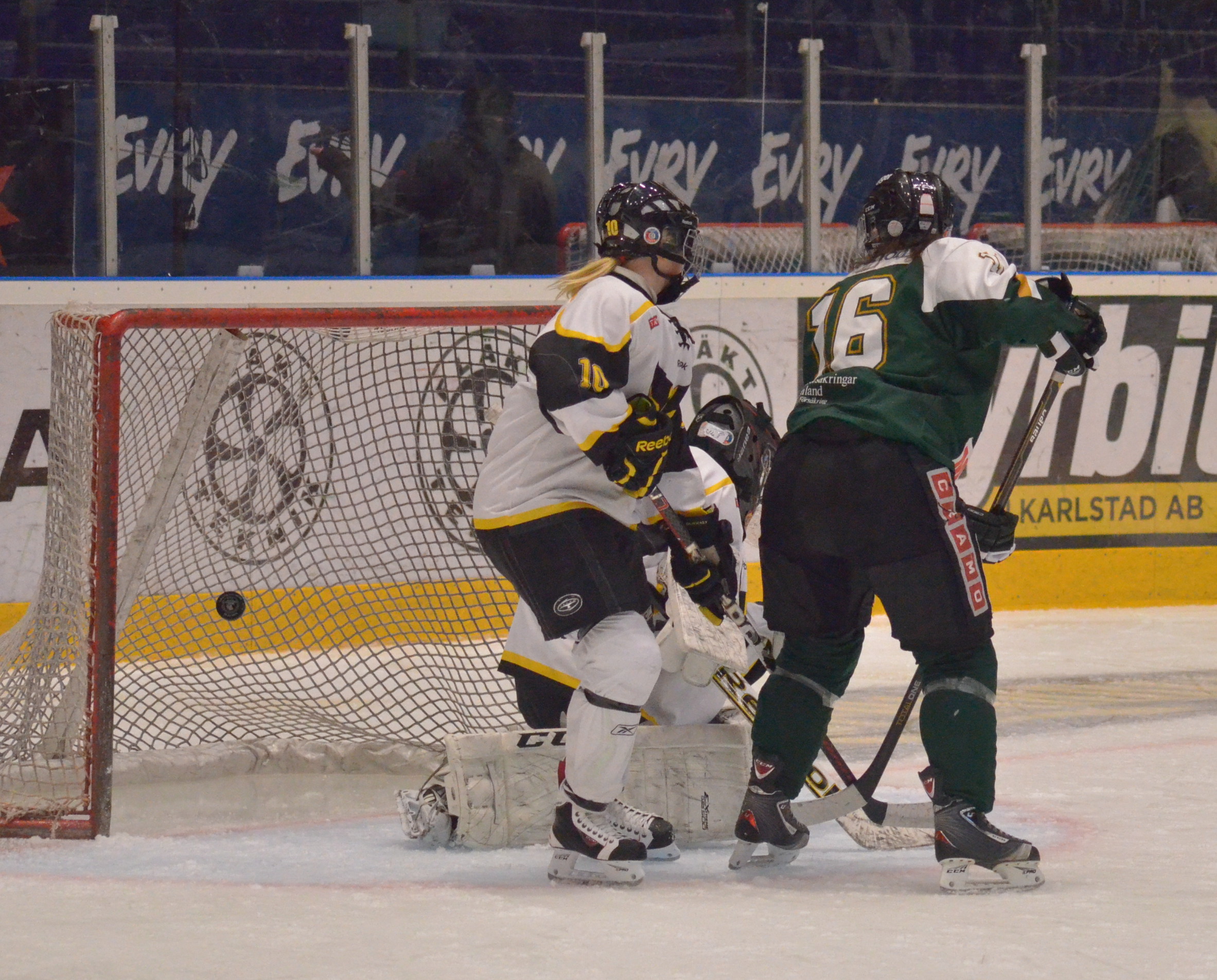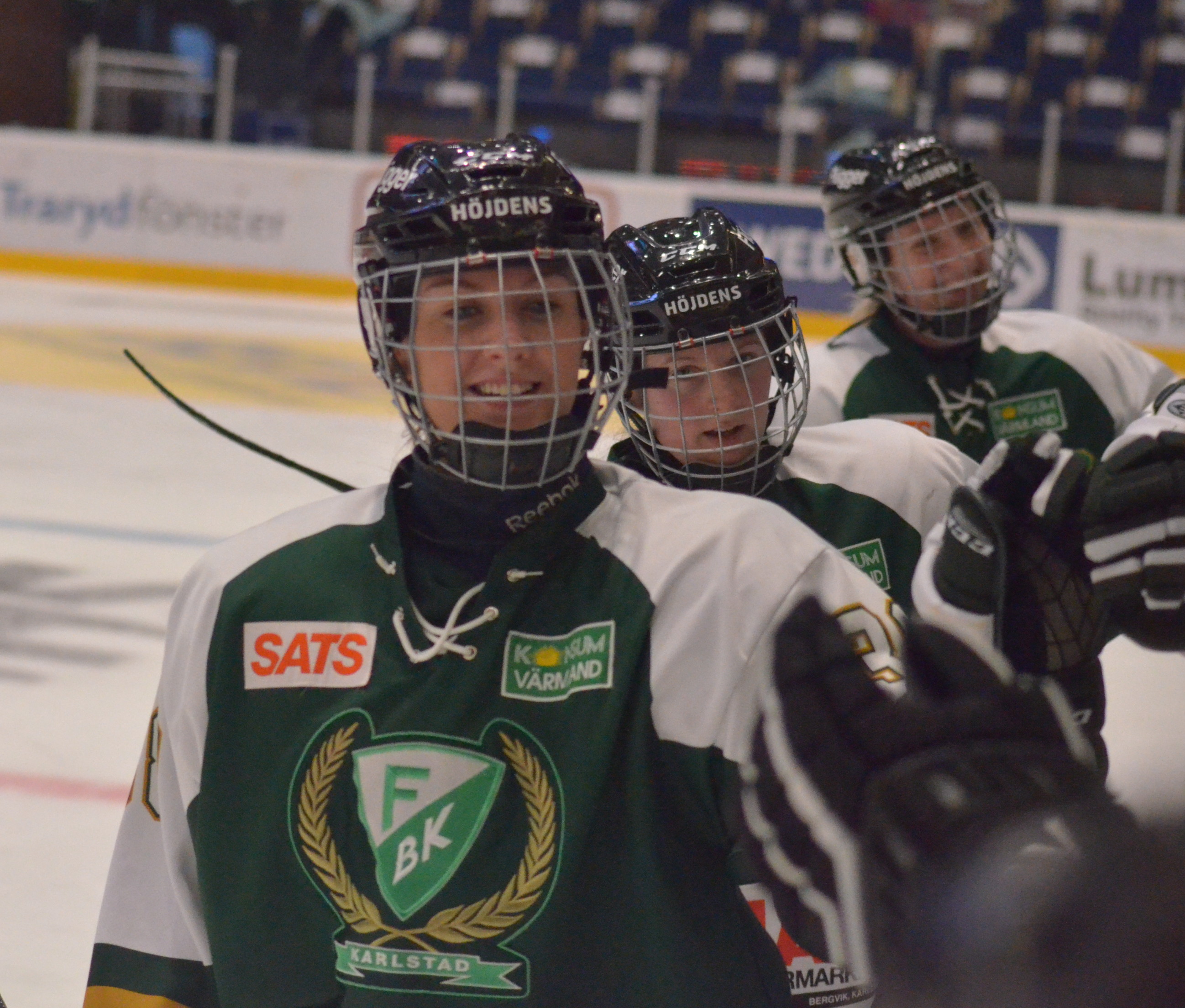 Det stod 3-0 efter första perioden, och faktum var att två av de tre målen kommit från backarna. Tilda Antonsson gjorde sitt första mål för säsongen – och därmed också i Färjestadströjan – och backklippan tillika lagkaptenen Sara Kask har kommit igång bra och fortsätter att producera såväl assist som egna mål. Tillsammans med respektive backkollega, Fia Larsson och Jolin Blom, spelade de alltså vartannat byte genom hela matchen!
