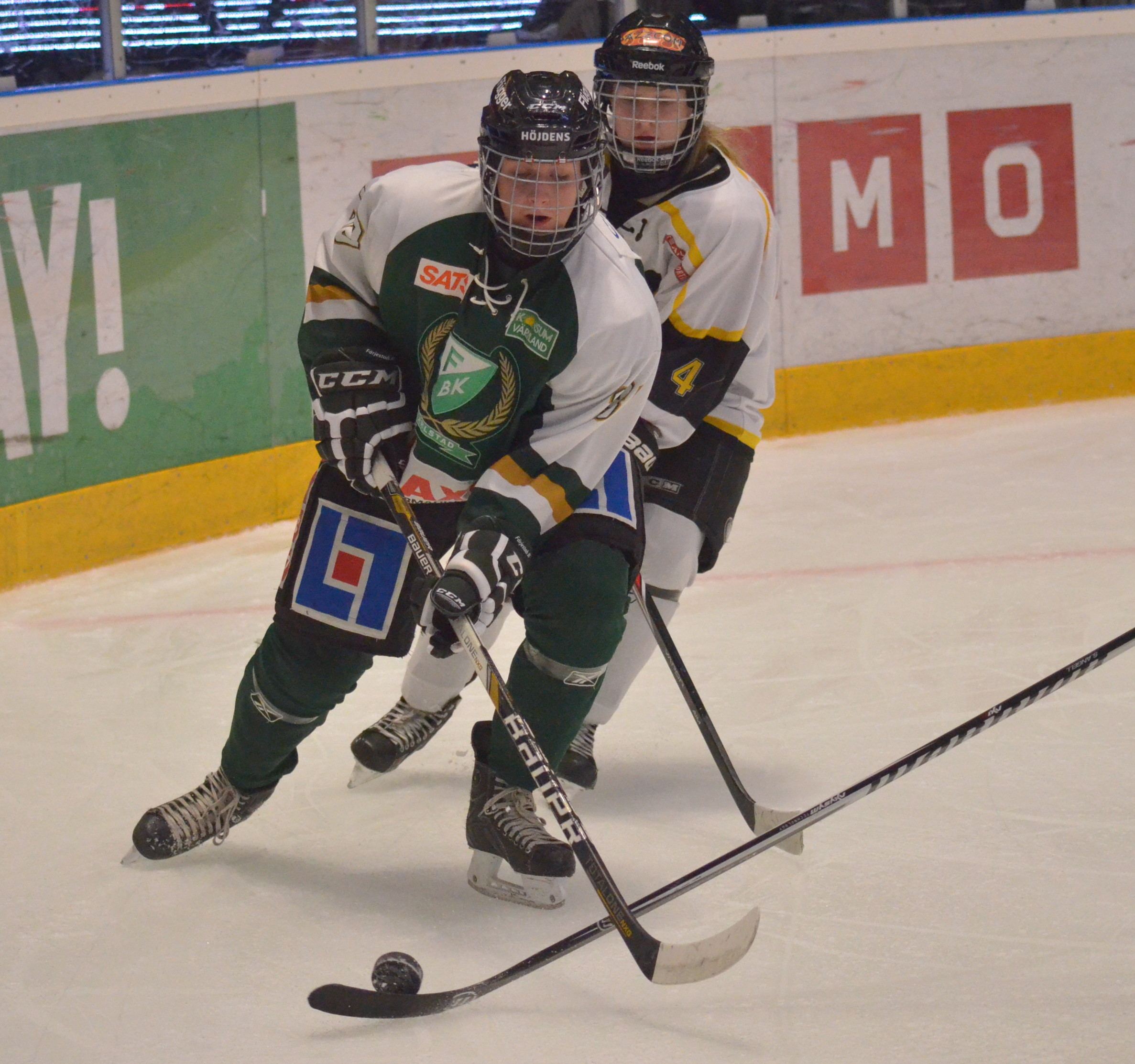 - FBK Dam vs VIK Västerås HK 10/1 2015. Sara Kask har pucken.